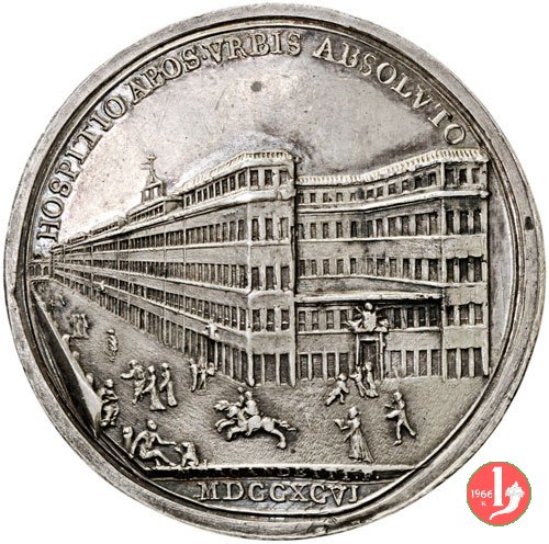Medaglia annuale coniata, emessa il 29-06-1796 a ricordo della fine lavori all'Ospizio Apostolico.