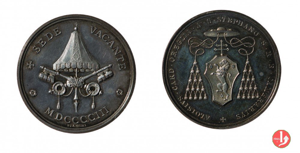 Medaglia coniata, emessa per ricordare la Sede Vacante nel 1903, per il Card. Camerlengo Luigi Oreglia di S. Stefano.