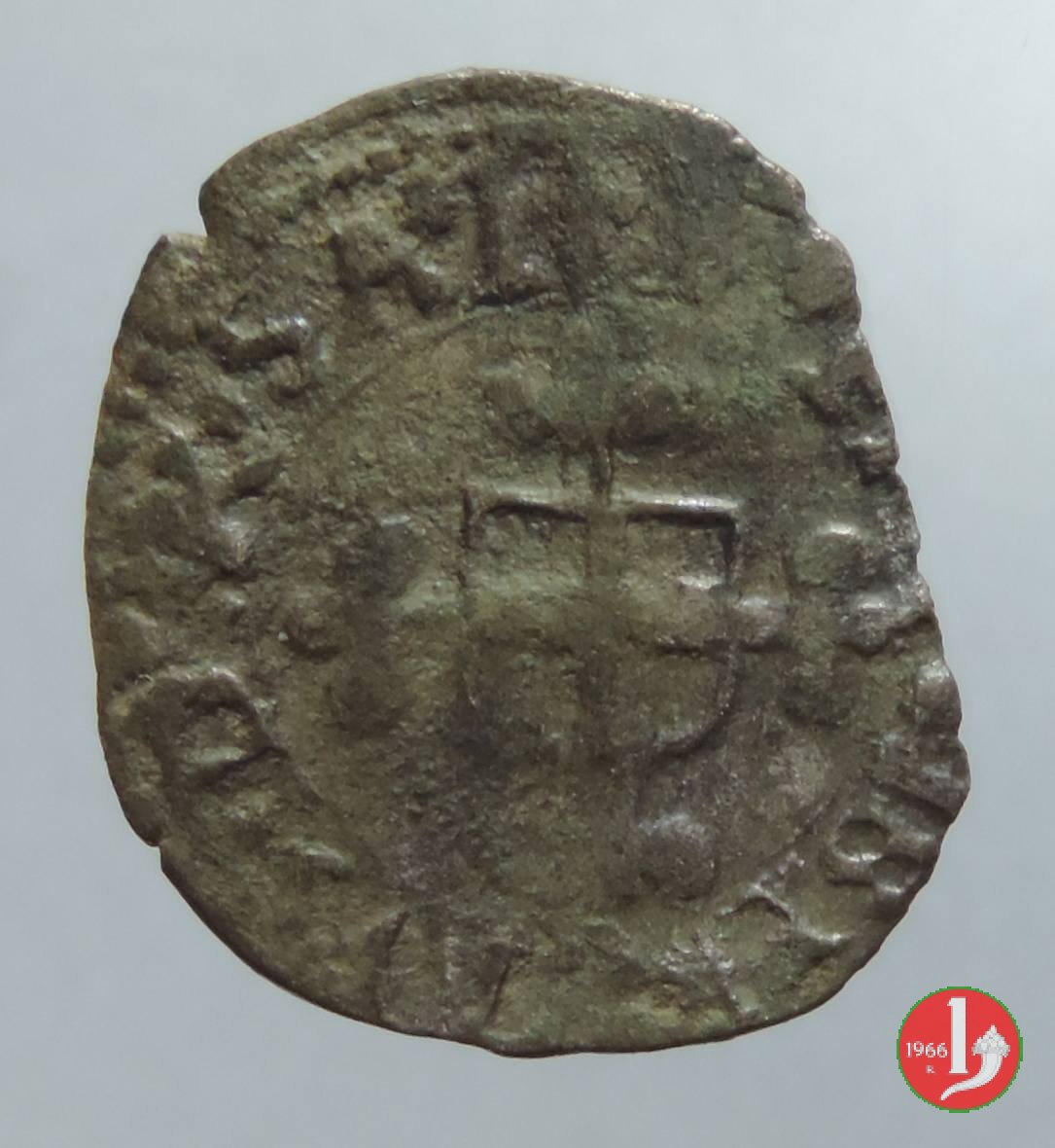 Uno scudo semplice su di una croce mauriziana, intorno: croce E : PHILIBER : DUX : SA Laa scritta in gotico FERT fra quattro rette con un nodo savoia sopra ed uno sotto, intorno: croce KBLASI • ET • AUG • S • RO • IM