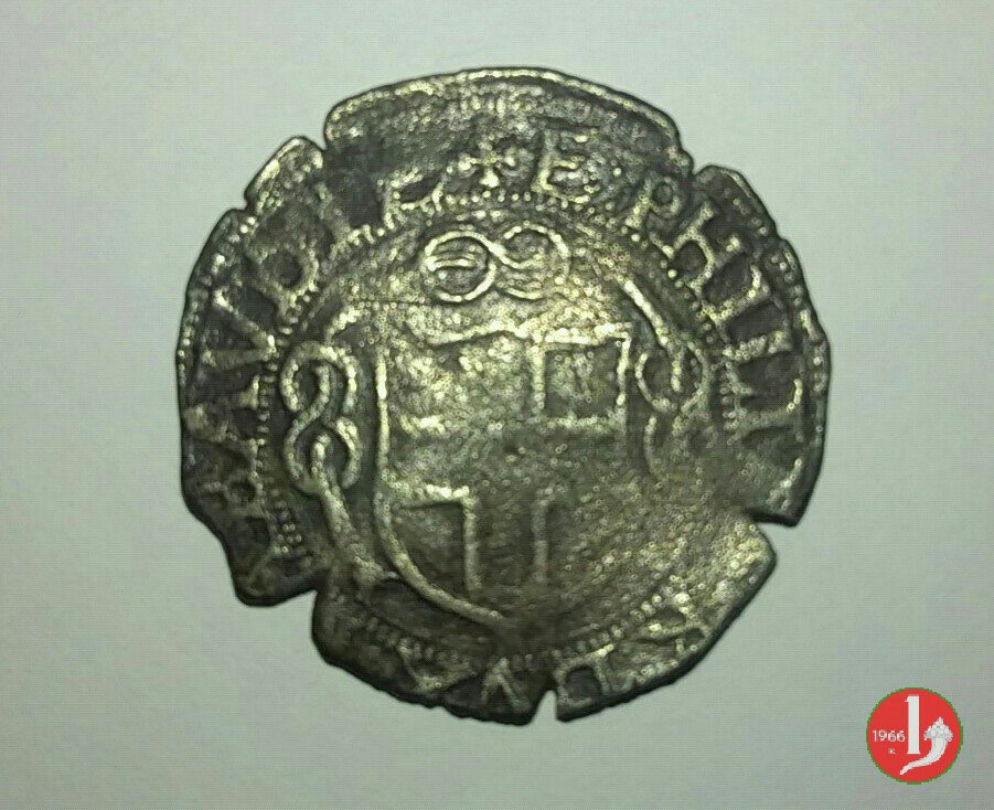 Scudo semplice fra tre nodi savoia continui, intorno: croce E : PHILIBER : DUX : SABAUDIE Croce mauriziana dentro una cornice quadrilobata, intorno: croce KBLASI : AUG : RO : IMP : VI : PER : PRI
