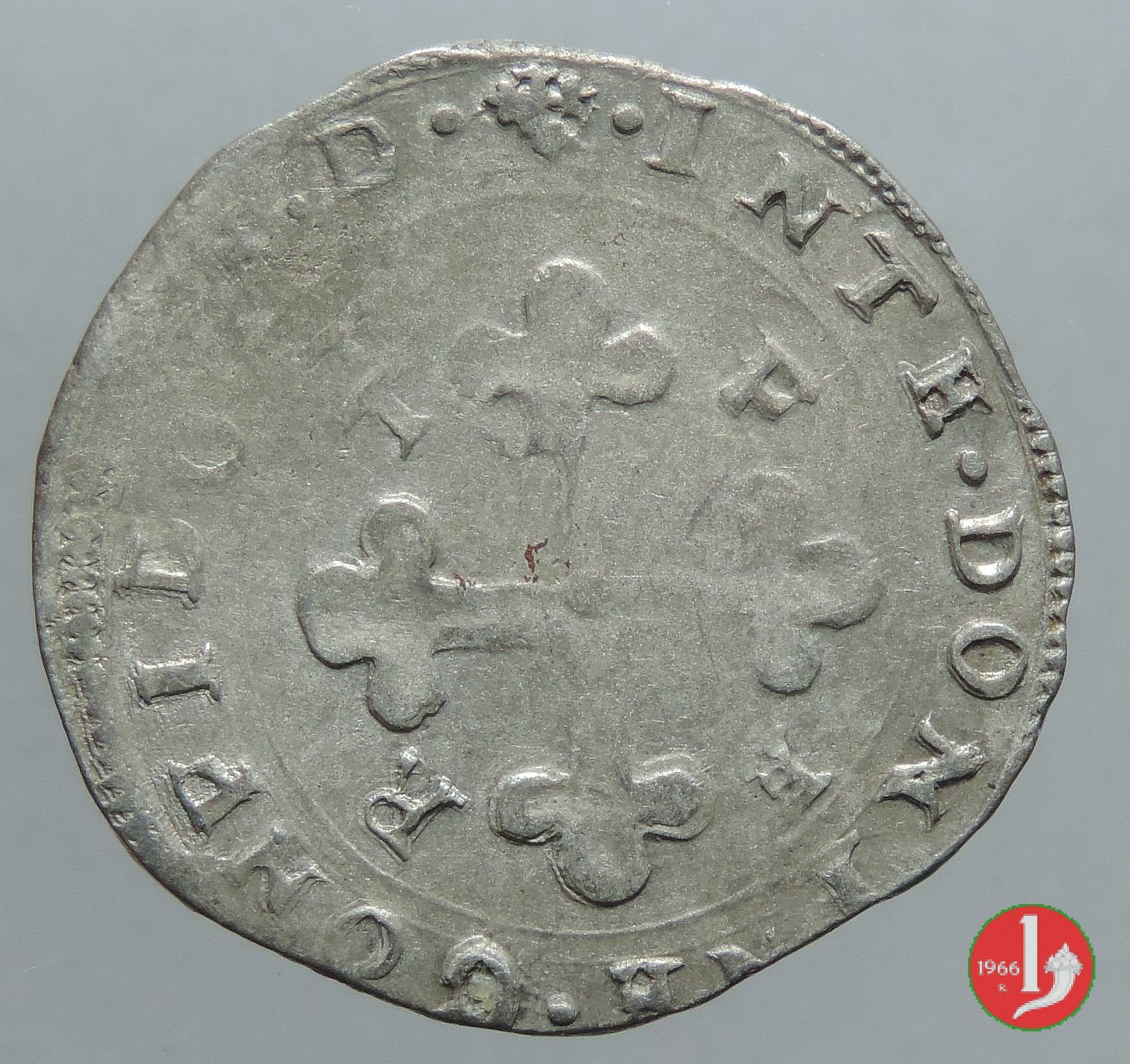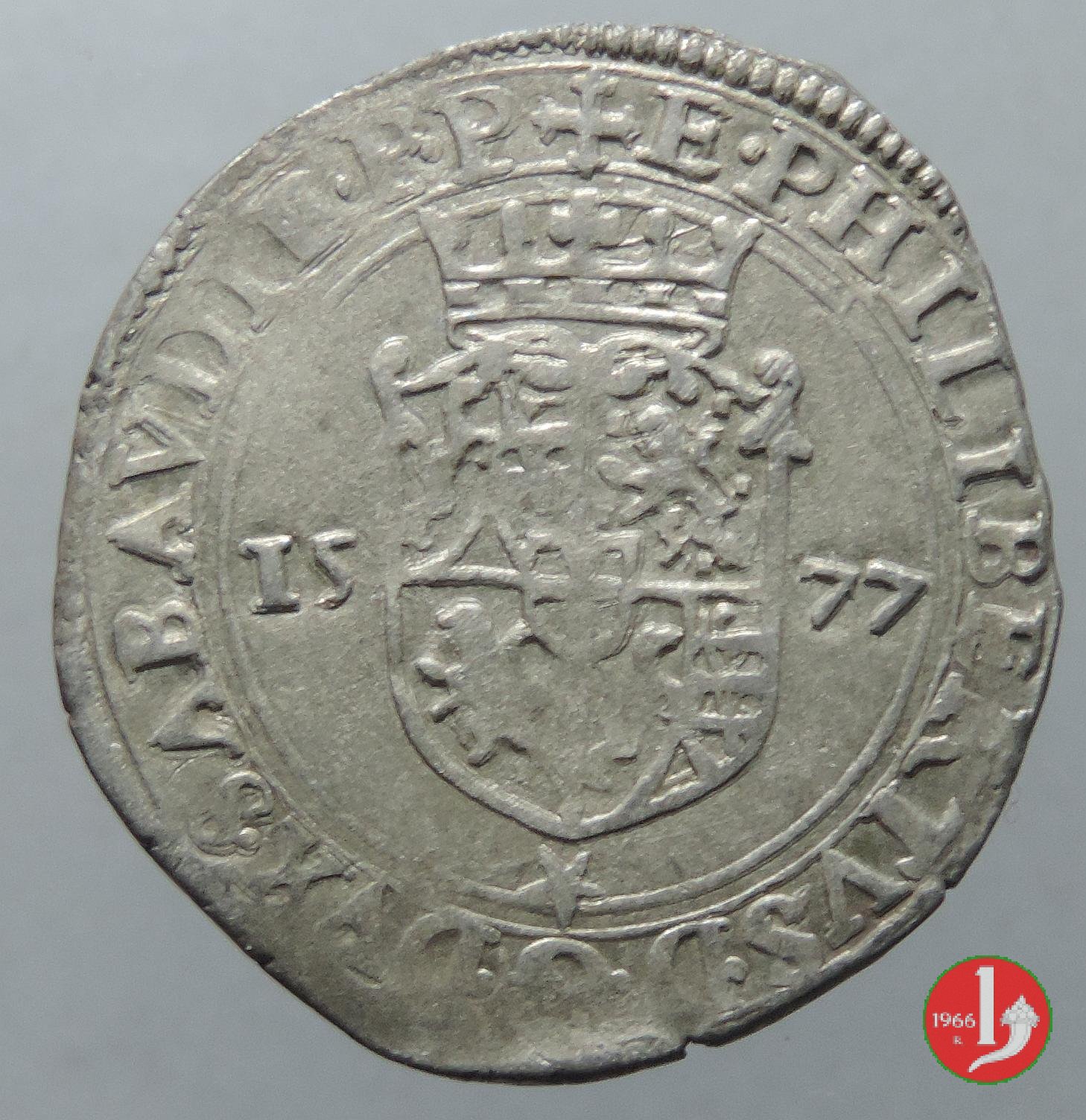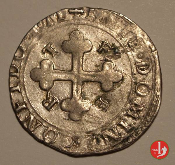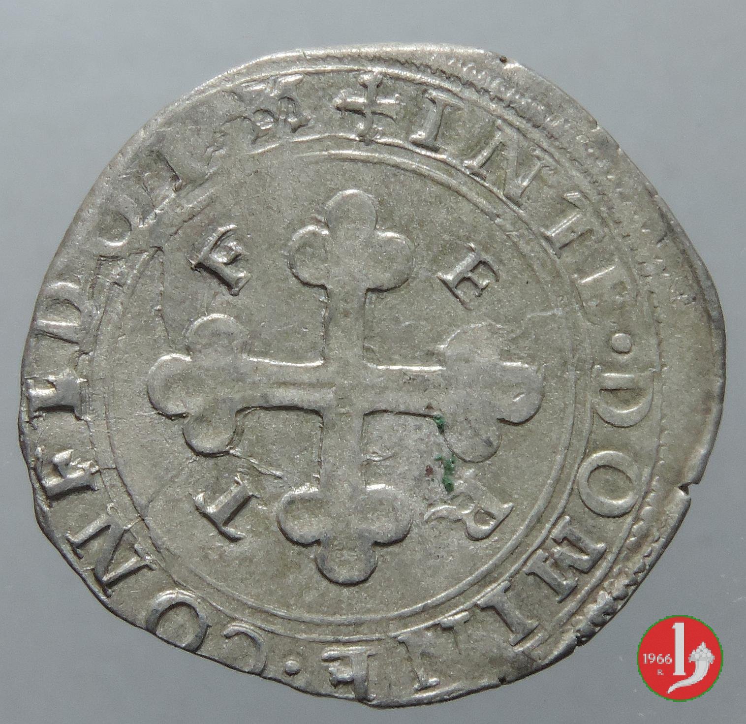 Scudo completo coronato con ai fianchi la data e sotto le sigle di zecca, intorno: croce E • PHILIBERTUS • D • G • DUX • SABAUDIE • PP Croce mauriziana accantonata dalla scritta F E R T, intorno: croce IN • TE • DOMINE • CONFIDO • sigle
