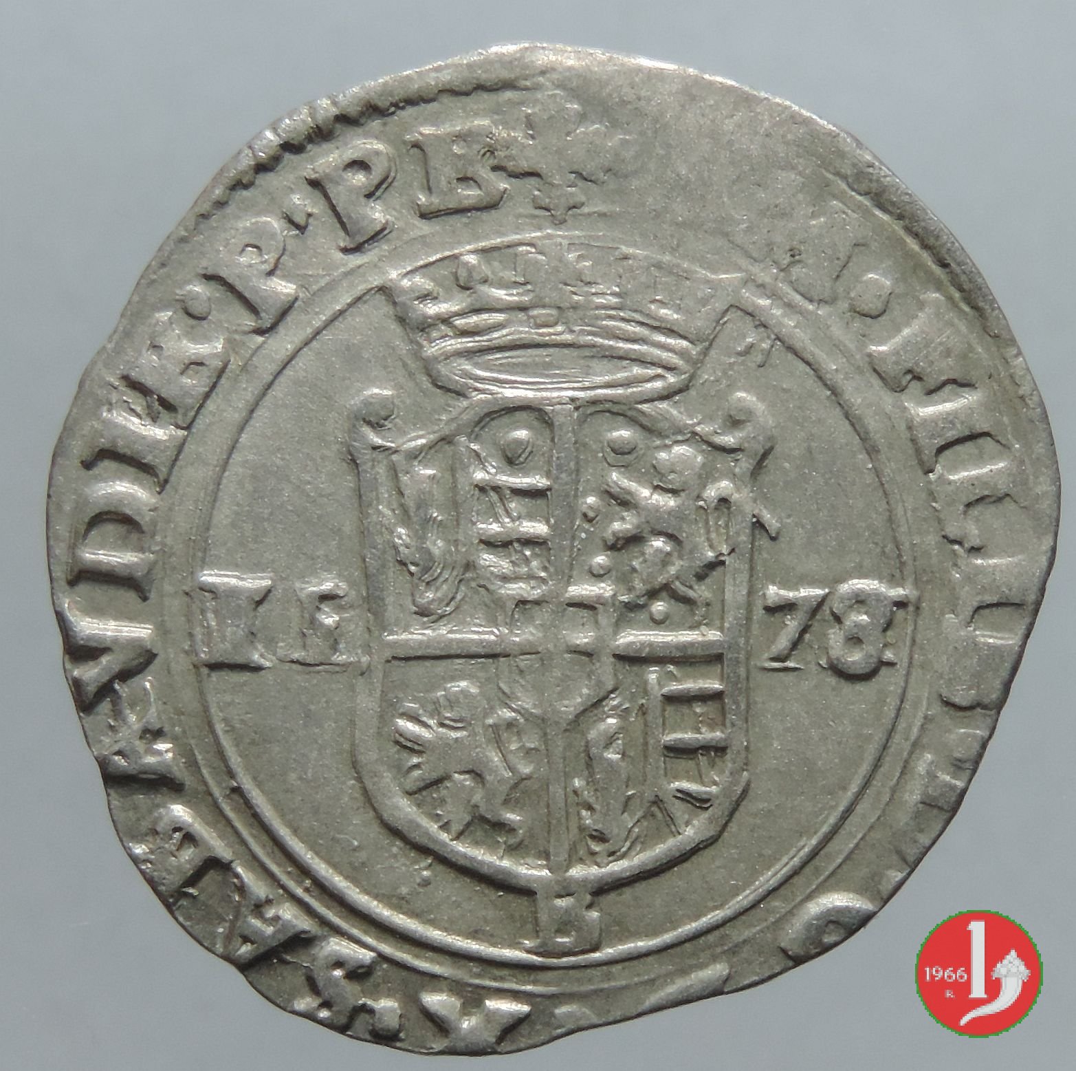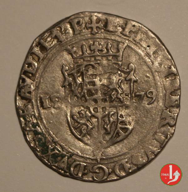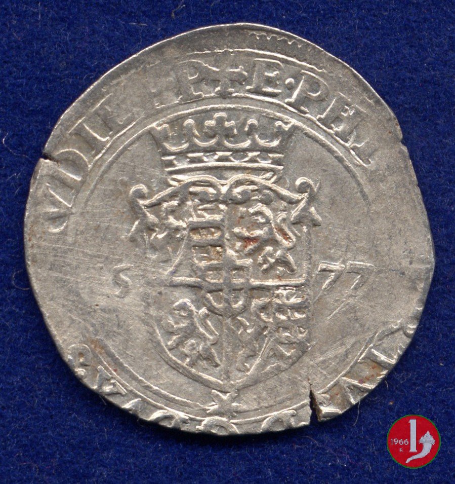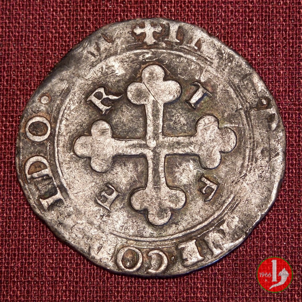 Scudo completo coronato con ai fianchi la data e sotto le sigle di zecca, intorno: croce E • PHILIBERTUS • D • G • DUX • SABAUDIE • PP Croce mauriziana accantonata dalla scritta F E R T, intorno: croce IN • TE • DOMINE • CONFIDO • sigle
