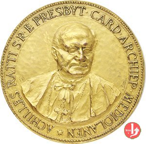 Medaglia coniata, emessa il 08-09-1921 per ricordare l'insediamento del nuovo Arcivescovo di Milano Achille Ratti.