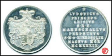 * = LVDOVICVS = PRINCEPS = CHISIVS = S • R • E • = MARECHALLVS = PERPETVVS = S • M • O • HIEROSOLIM • = MAGNVS MGR  = MCMXXXIX = fregio