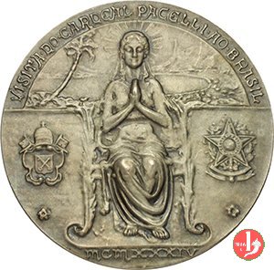 Medaglia coniata, realizzata nel 1934 dalla Casa da Moeda di Rio de Janeiro, per ricordare la visita del Card. Pacelli in Brasile. Sul contorno liscio, inciso: CASA DA MOEDA | ||||||