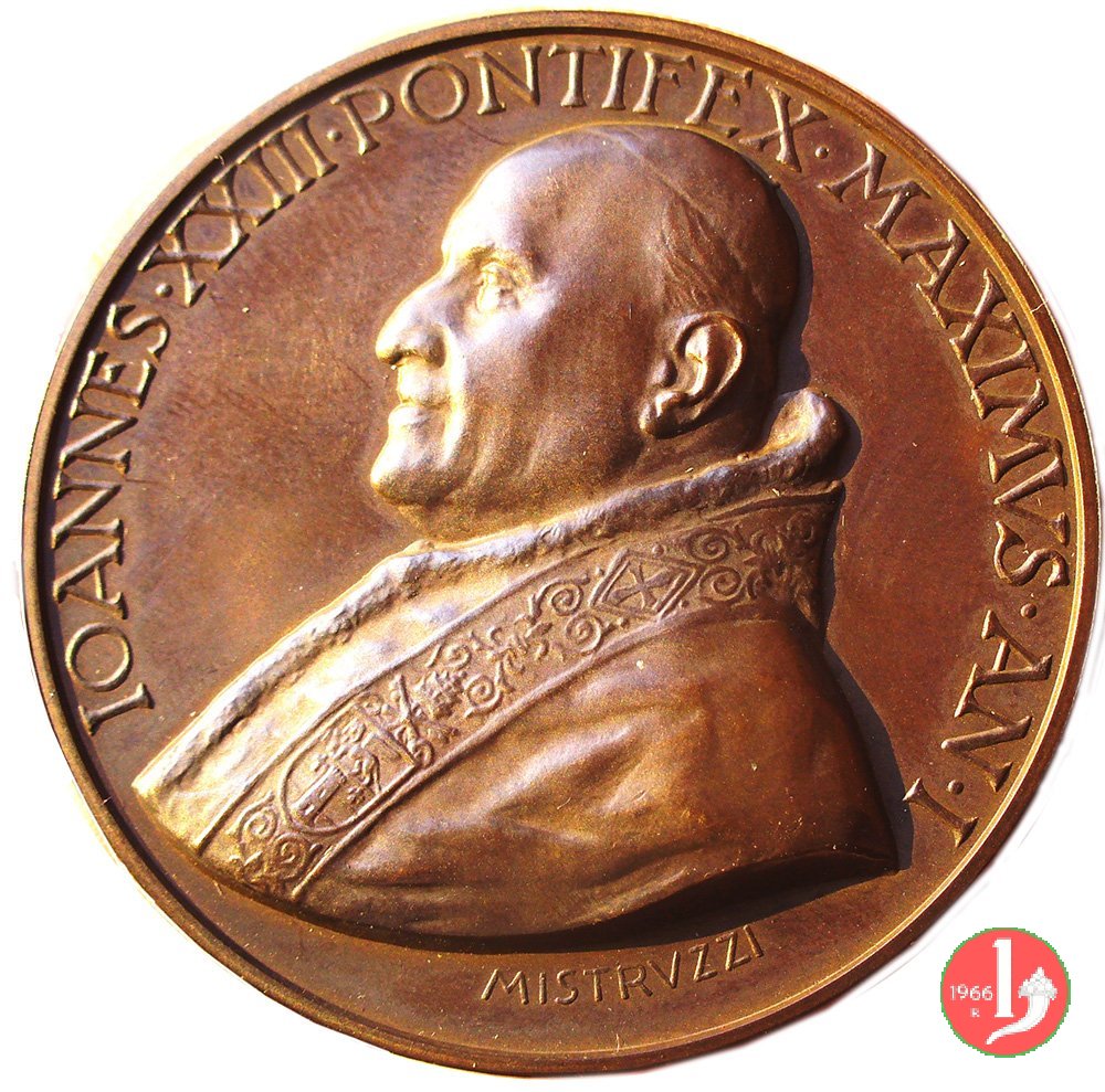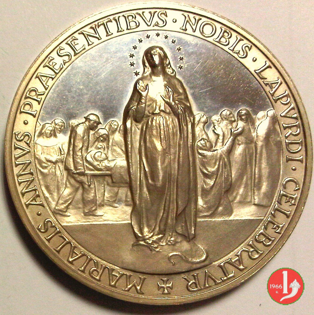 | Medaglia annuale coniata, emessa il 29-06-1959, dalla Zecca Italiana con fondo lucido a ricordo dell'anno Mariano celebrato a Lourdes nel centenario dell'apparizione della Madonna. | ||||||||