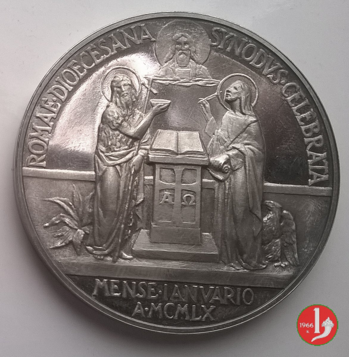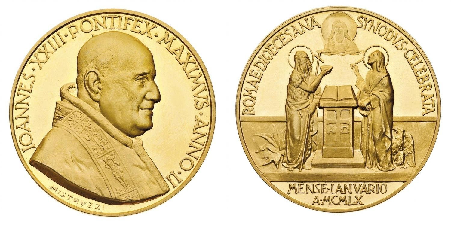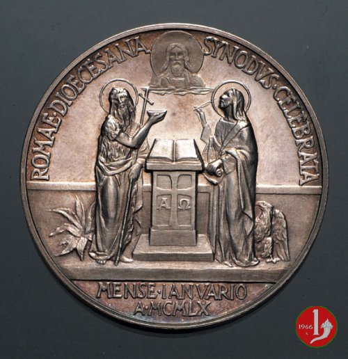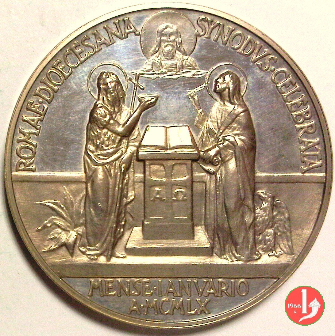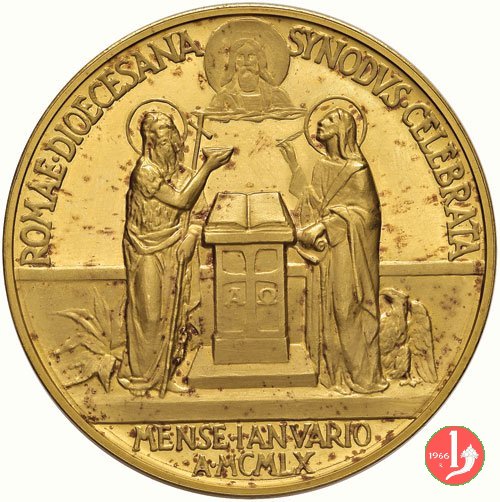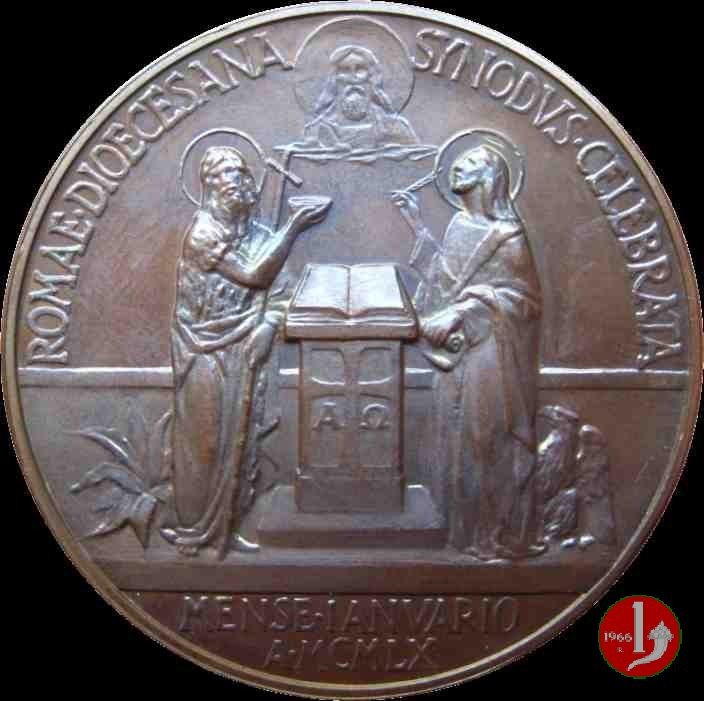 Medaglia straordinaria coniata, emessa il 25-01-1960 con fondo lucido, a ricordo della Convocazione del Sinodo Diocesano a Roma.