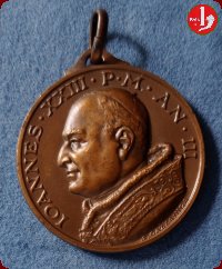 | Medaglia coniata, emessa nel 1960, con fondo satinato, a ricordo della visita dell'allora Card. Roncalli a Mantova nel 1957 in occasione del 550° Anniversario della fondazione del Ducato. | ||||||