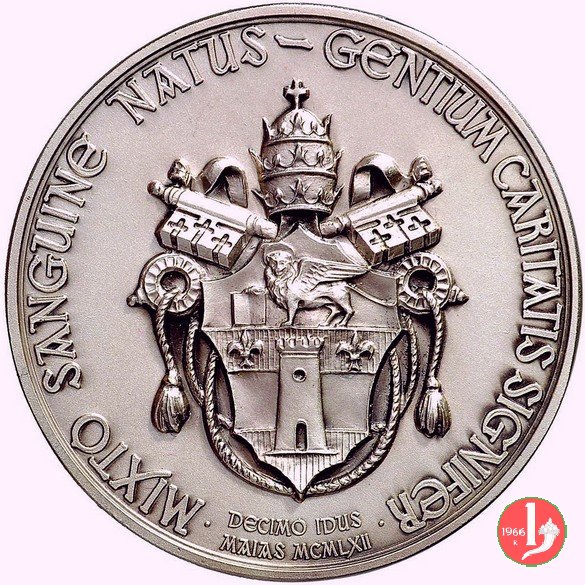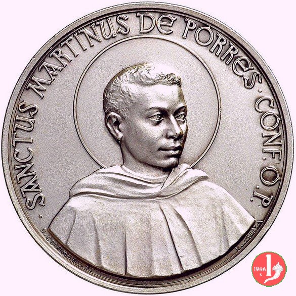 | Medaglia coniata, emessa il 06-05-1962, con fondo satinato, dallo Stabilimento Damiano Colombo e Figli di Noviglio (MI), per ricordare la canonizzazione di Martino de Porres. | |||||||