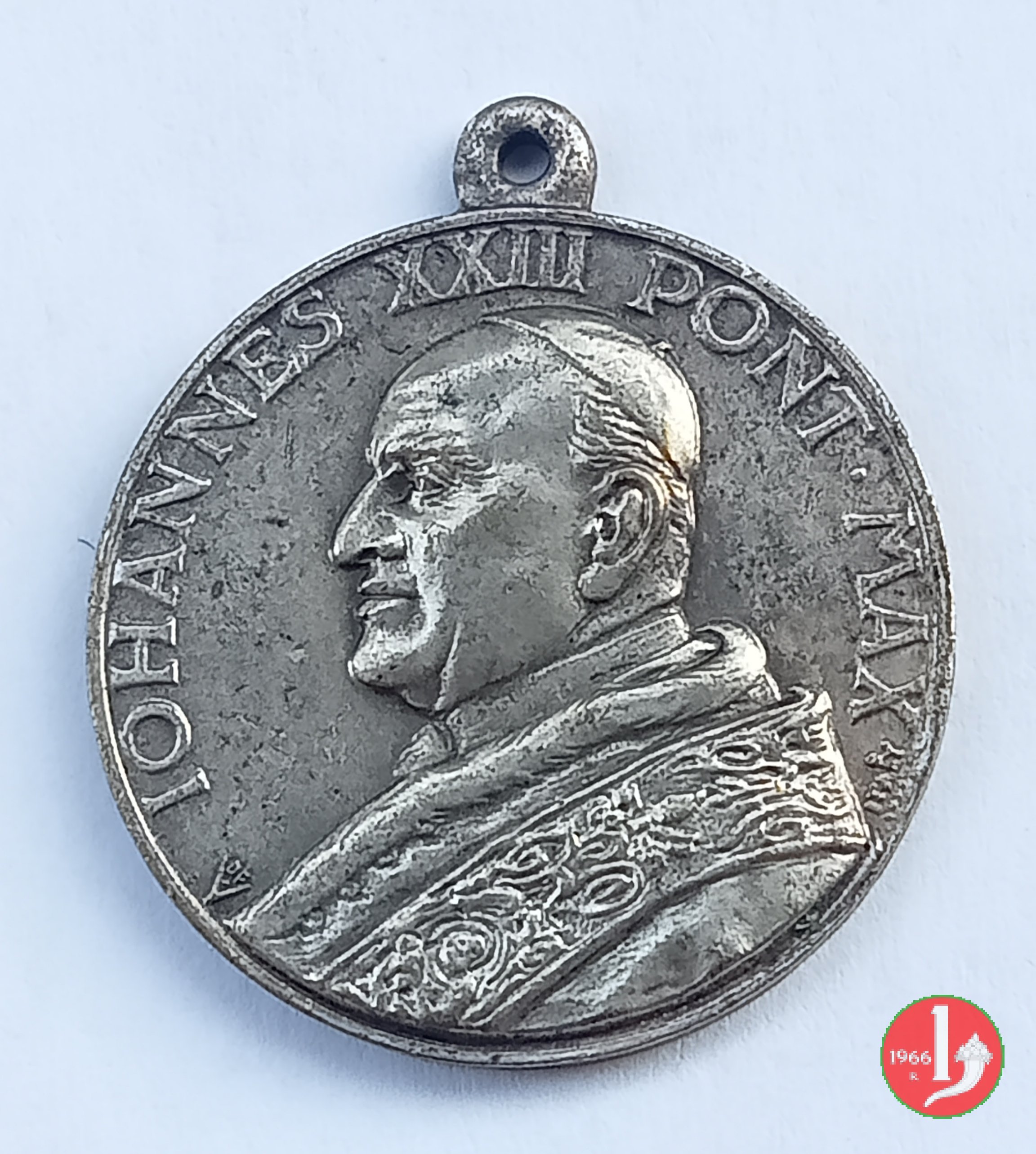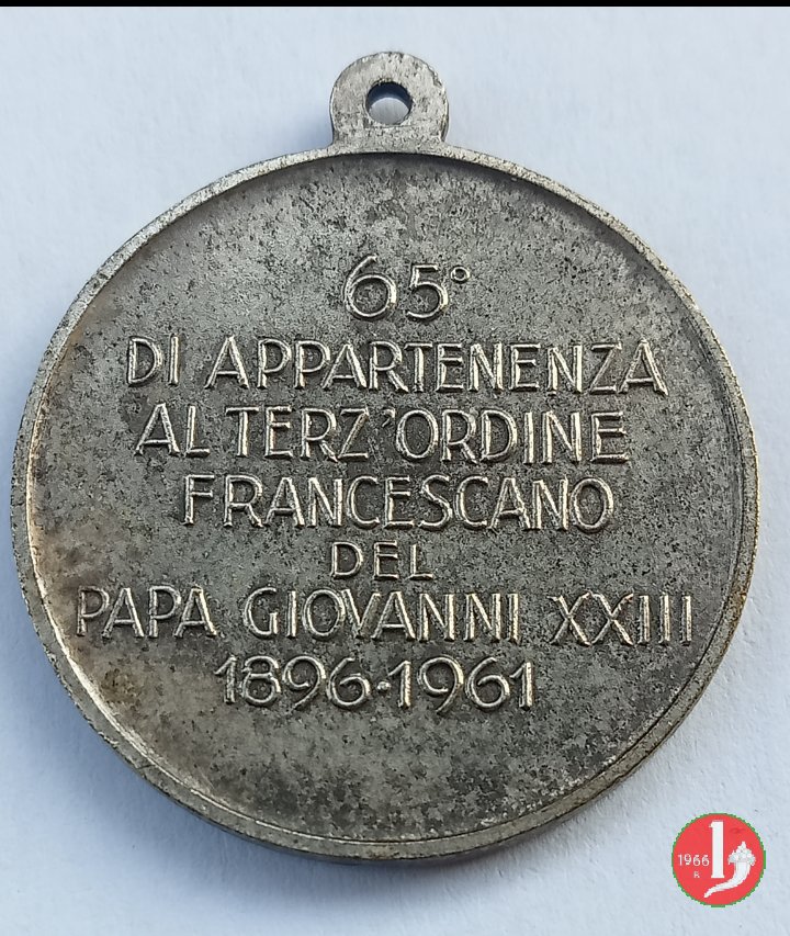 | Medaglia coniata, emessa nel 1961, con fondo satinato, per ricordare il sessantacinquesimo anniversario dell'appartenenza del Papa al Terz'Ordine Francescano. | ||||||||