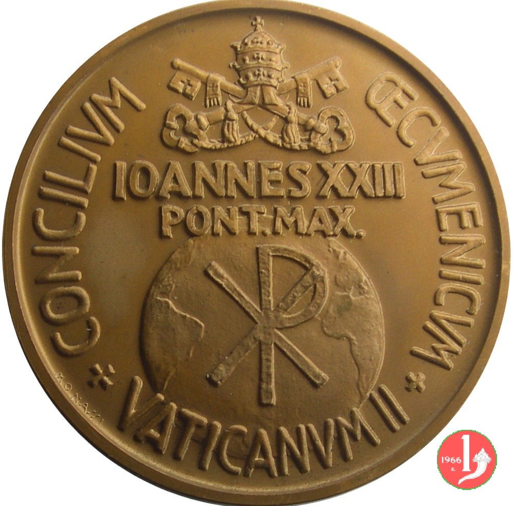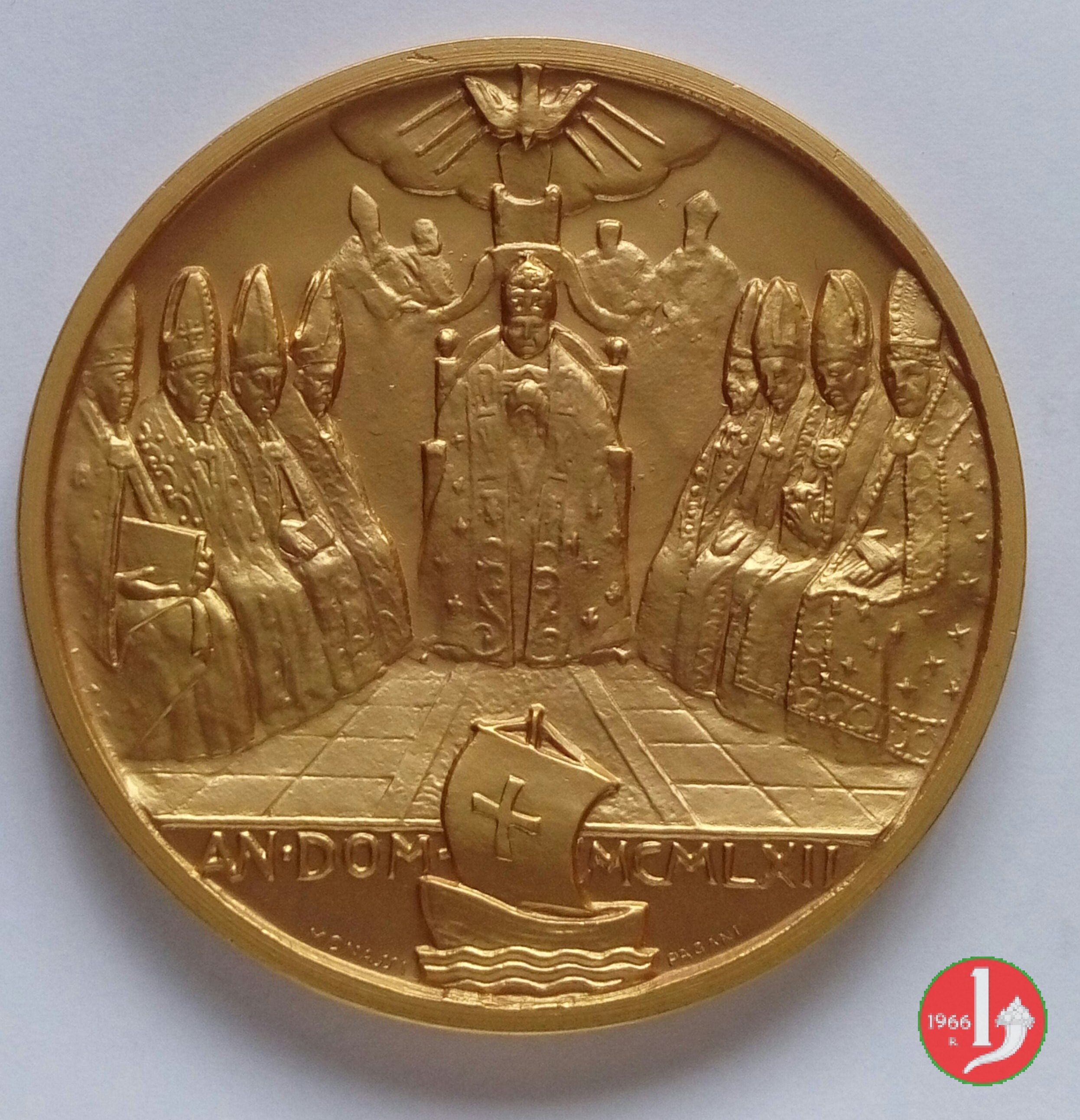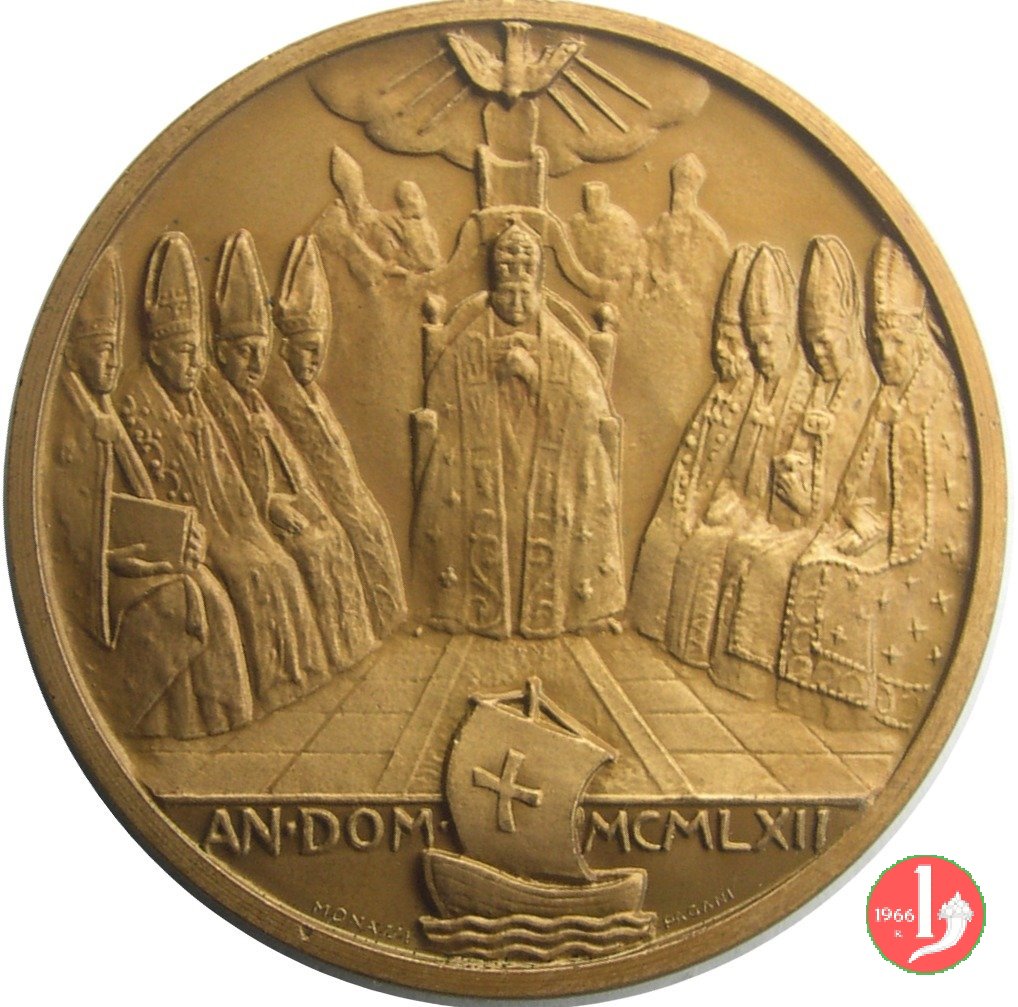 Medaglia coniata, emessa nel 1962, con fondo satinato dallo Stabilimento Emilio Pagani di Milano, a ricordo del Concilio Ecumenico Vaticano II.