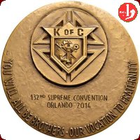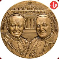 | Medaglia coniata, emessa il 27-04-2014 dallo Stabilimento Damiano Colombo e Figlio di Milano, per i Cavalieri di Colombo, a ricordo della Canonizzazione di Giovanni XXIII e Giovanni Paolo II a Roma e della 132° Convention dei Knights of Columbus, tenutasi ad Orlando in Florida. | |||||