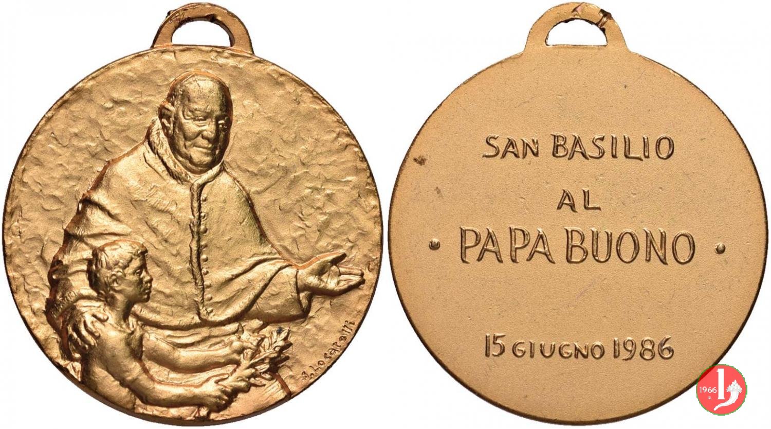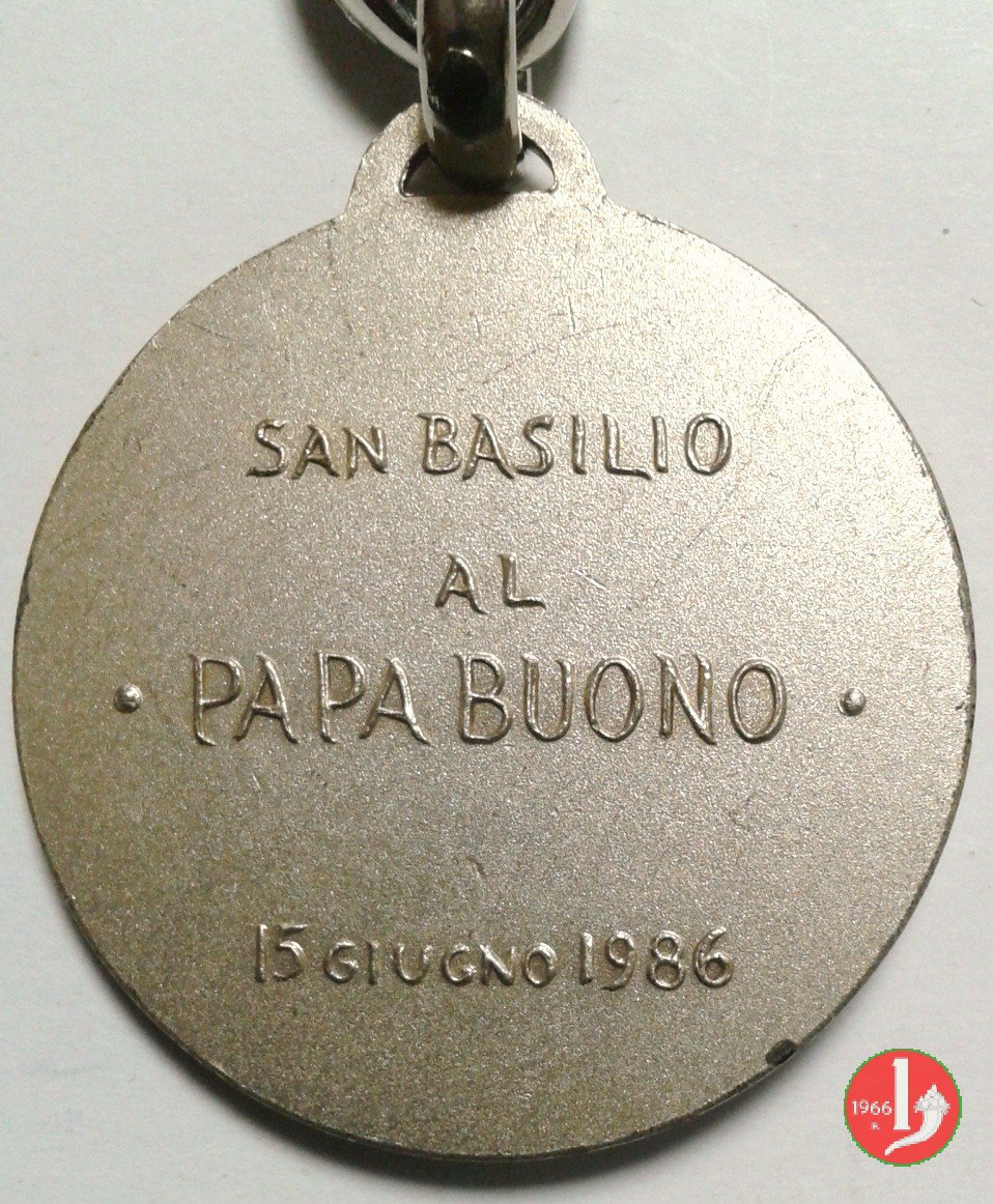 Medaglia coniata, emessa il 15-06-1986 con fondo satinato dallo Stabilimento A. E. Lorioli Fratelli di Milano, per ricordare l'inaugurazione del Monumento a Giovanni XXIII nella parrocchia di San Basilio in Roma.
