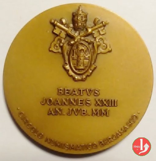 Medaglia coniata, emessa il 03-09-2000, con fondo opaco o satinato, dallo Stabilimento O.M.E.A. di Milano per il Circolo Numismatico Bergamasco, per ricordare la Beatificazione di Giovanni XXIII. | ||||||