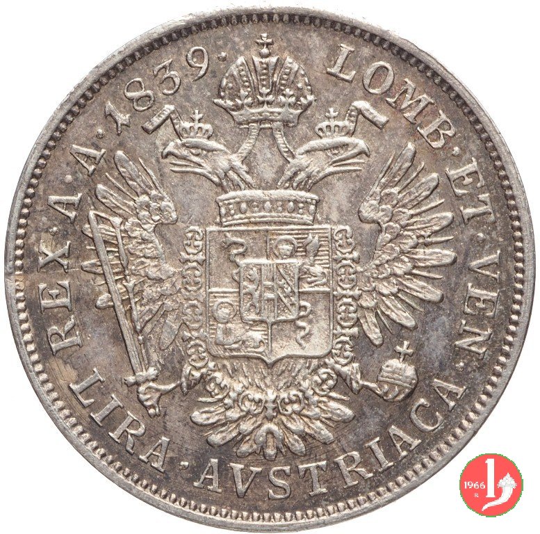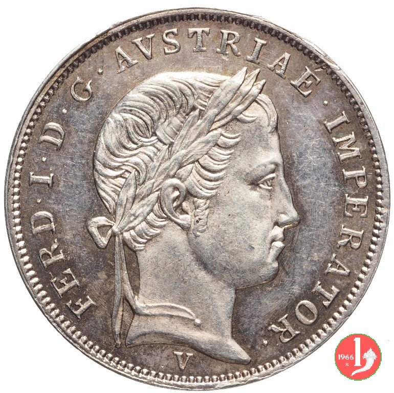 Testa laureata a destra. Nel giro FERD • I • D • G • AVSTRIAE. IMPERATOR. In basso V (segno di zecca per Venezia) Aquila bicipite coronata e caricata dello stemma inquartato di Lombardia e Venezia, con lo scudetto austriaco in cuore. Nel giro LOMB. ET. VEN. - REX. A. A. (millesimo). All'esergo LIRA.AVSTRIACA