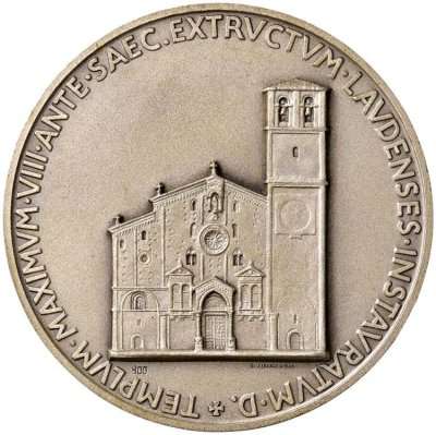 | Medaglia coniata, emessa il 08-06-1964 dallo Stabilimento Stefano Johnson di Milano per la Diocesi di Lodi, a ricordo dell'inaugurazione del Duomo di Santa Maria Assunta a Lodi dopo i restauri durati oltre sei anni. | ||||||