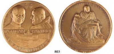 | Medaglia coniata, realizzata nel 1964 a ricordo del Padiglione Vaticano all'Esposizione Mondiale di New York. | |||||