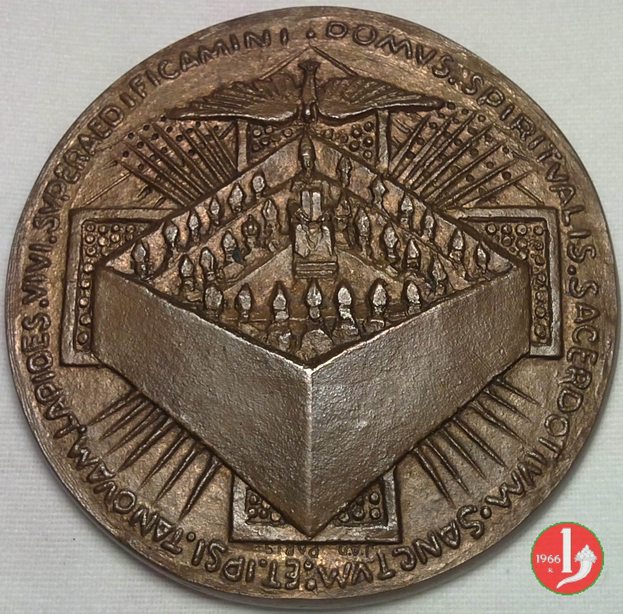 Medaglia fusa, realizzata nel 1963 per ricordare l'apertura della seconda sessione e la prosecuzione del Concilio Ecumenico Vaticano II nel primo anno di Pontificato di Papa Paolo VI.