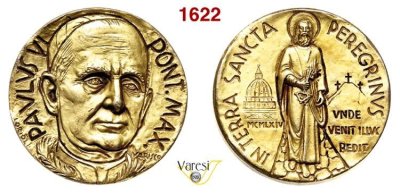 | Medaglia coniata, emessa nel 1964 per ricordare il Viaggio Apostolico in Terra Santa dallo Stabilimento Lorioli. | ||||||
