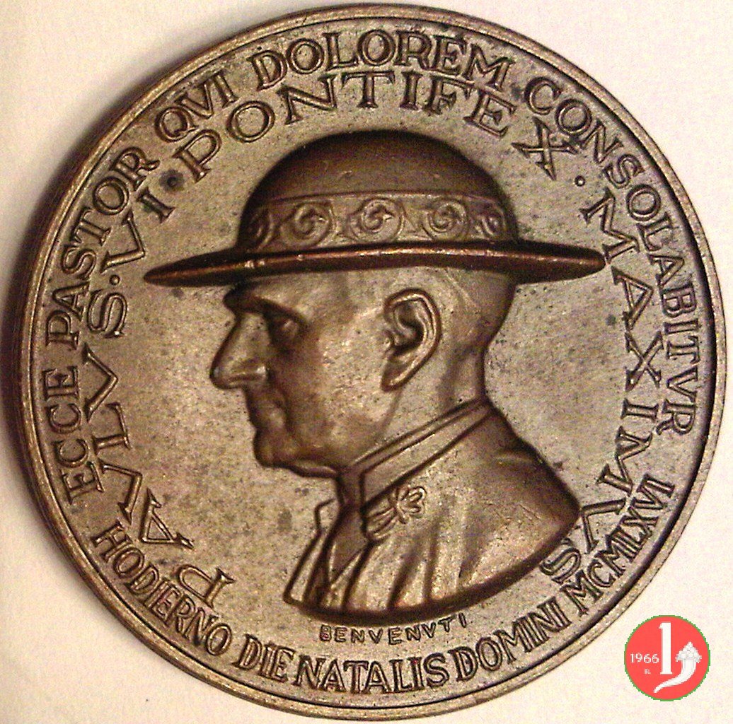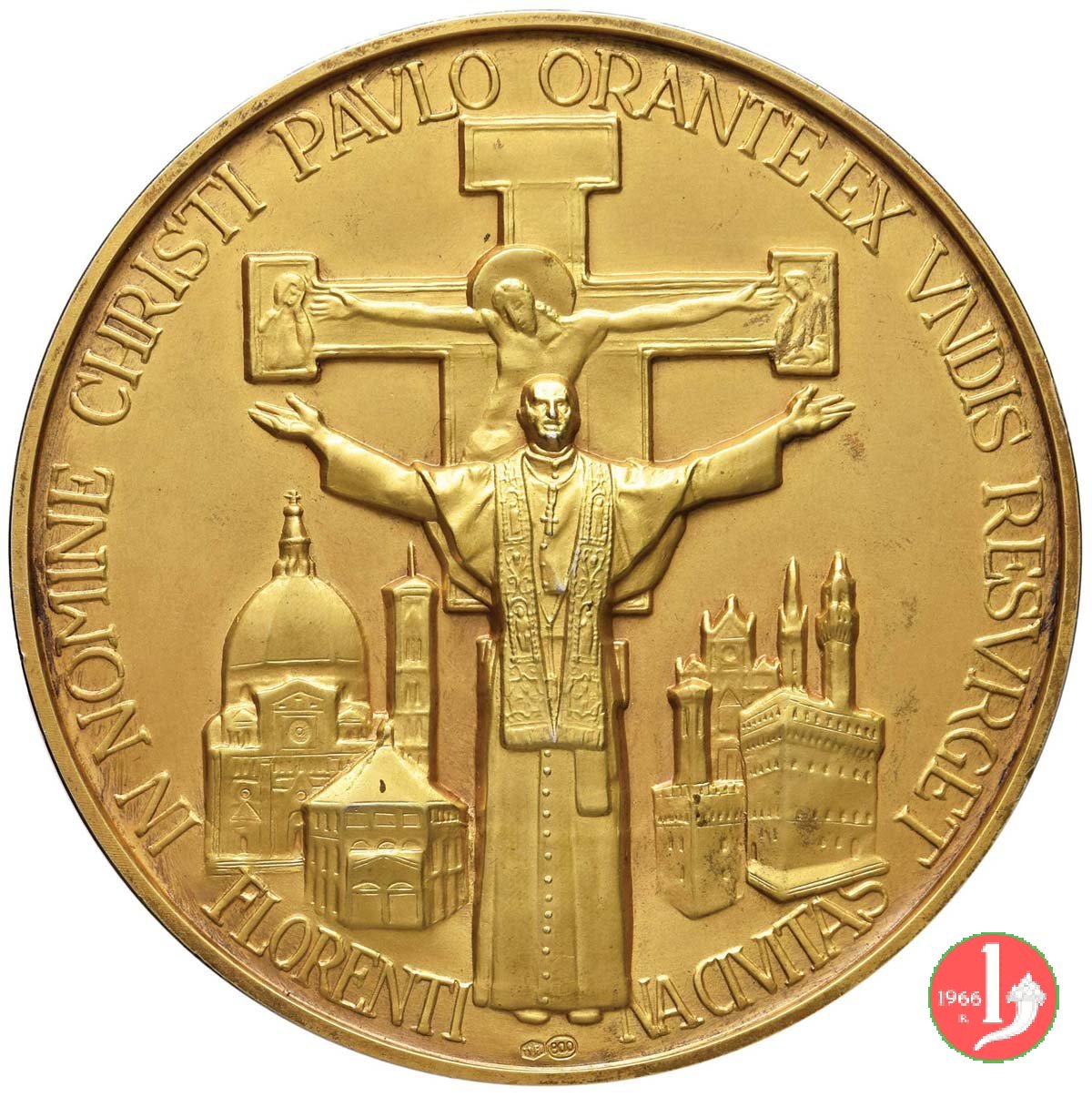 Medaglia coniata, emessa per ricordare la visita di Paolo VI nel Santo Natale 1966 e l'augurio alla Città dopo l'alluvione.