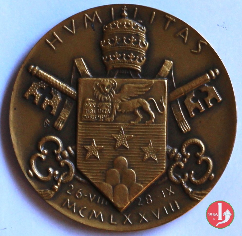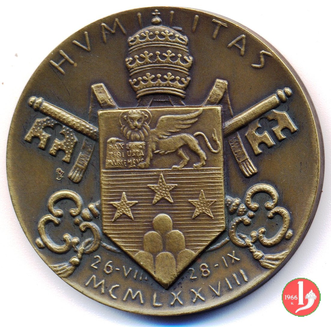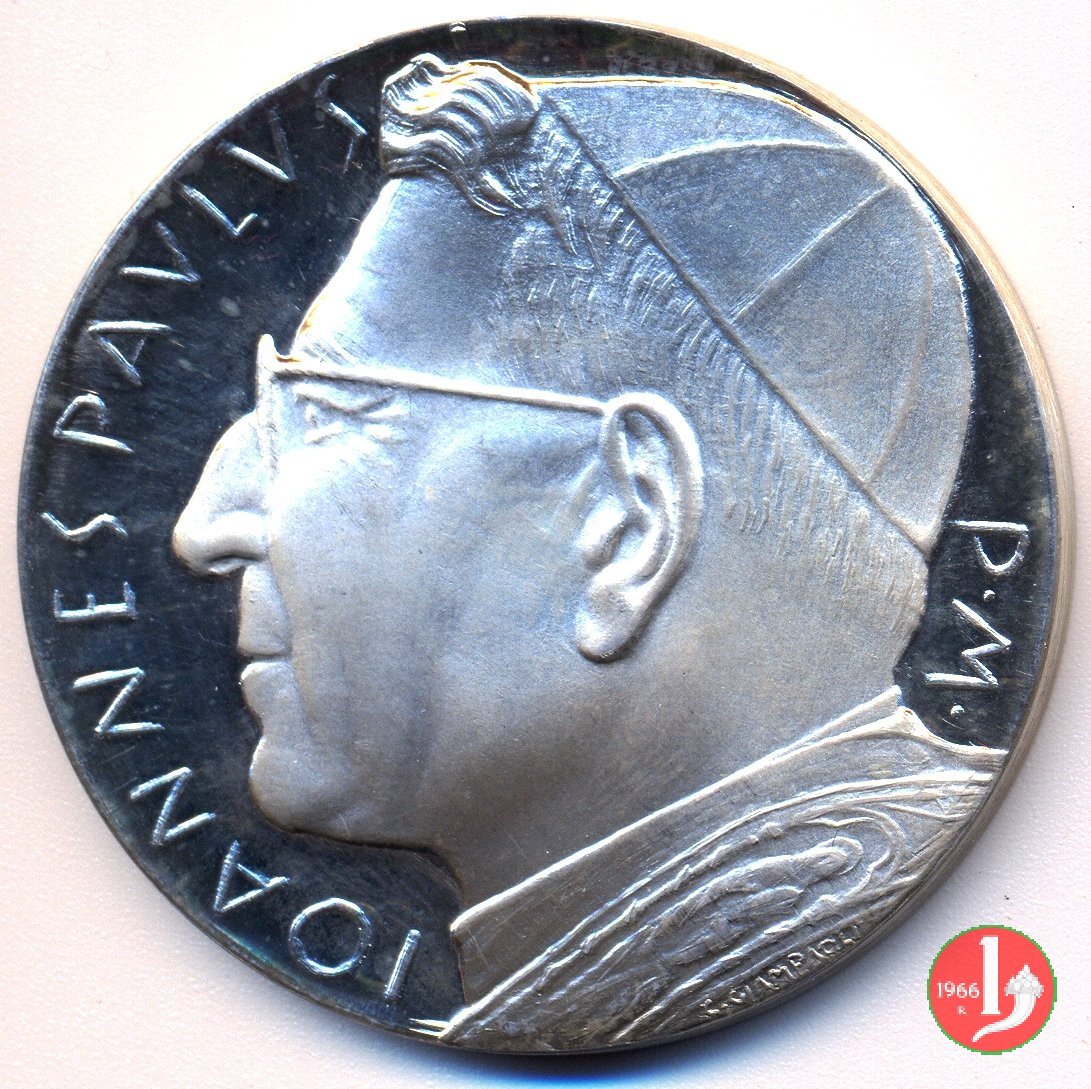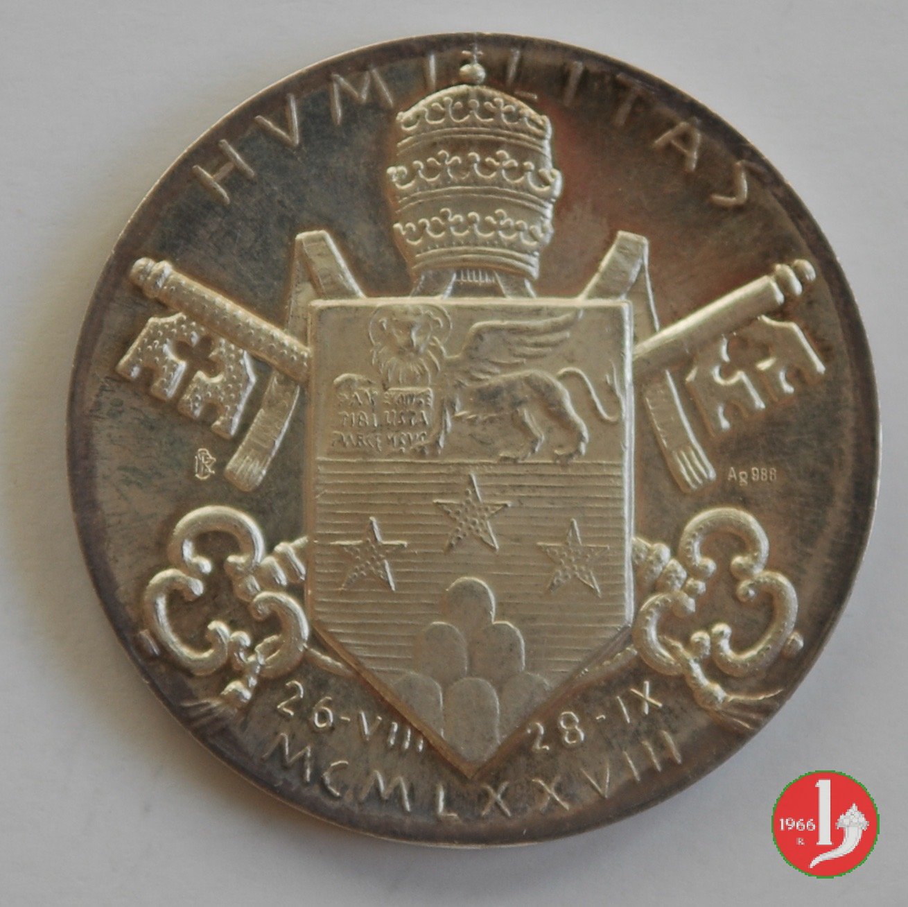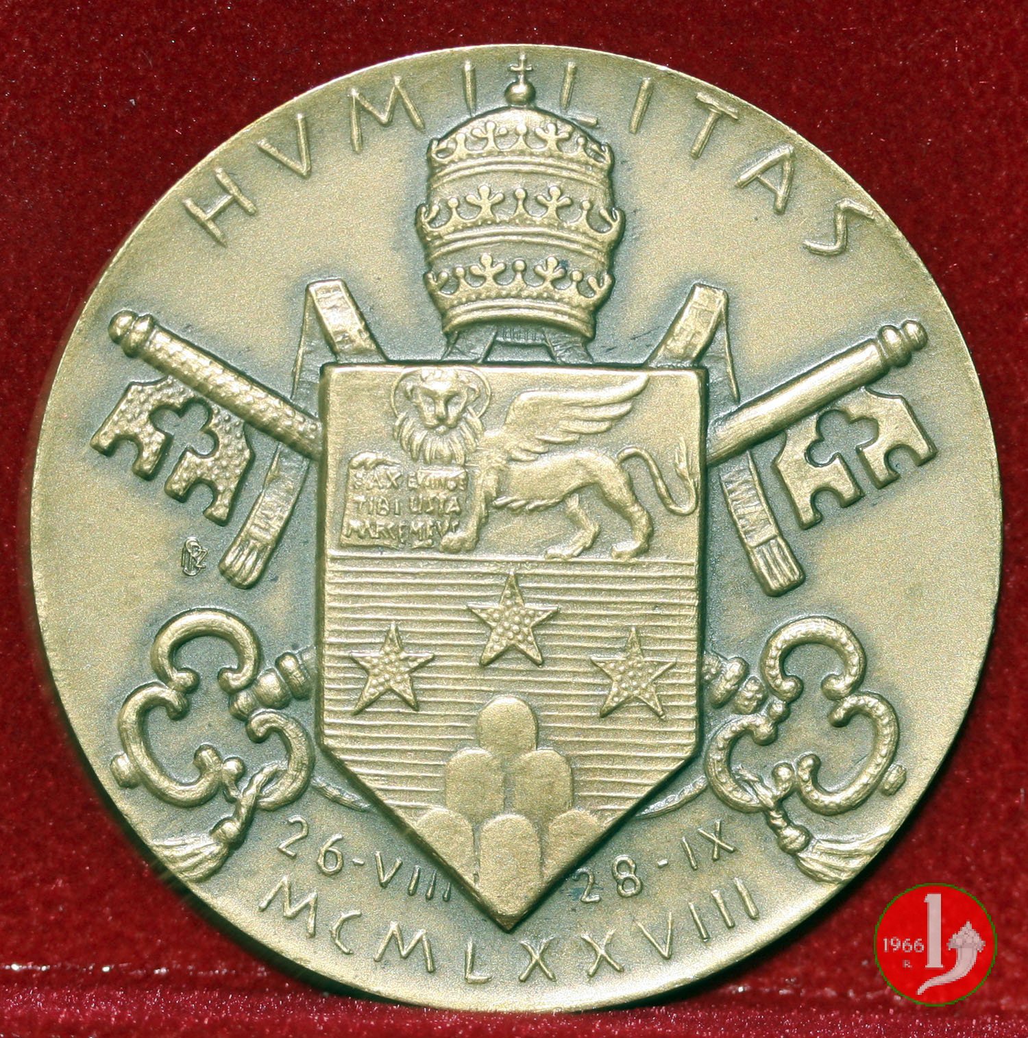 Medaglia ufficiale coniata, emessa nel 1978 con fondo satinato, per ricordare il breve pontificato di Giovanni Paolo I.