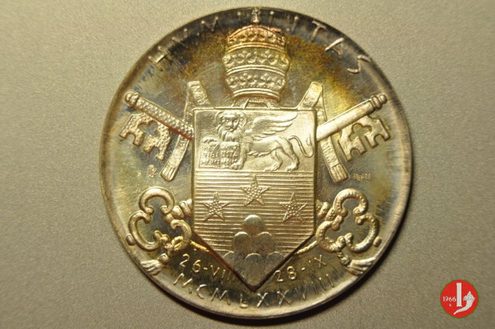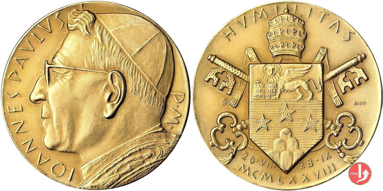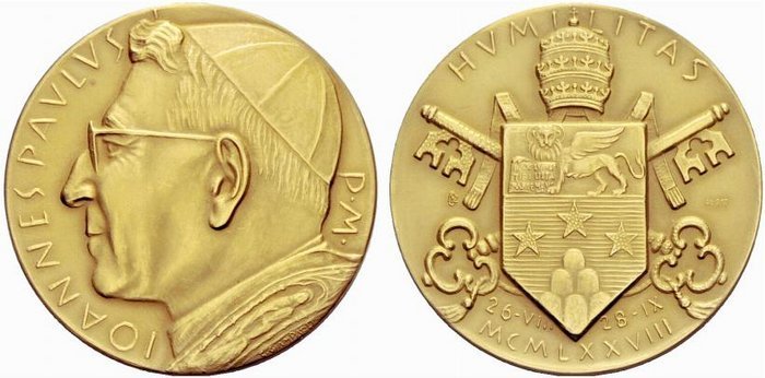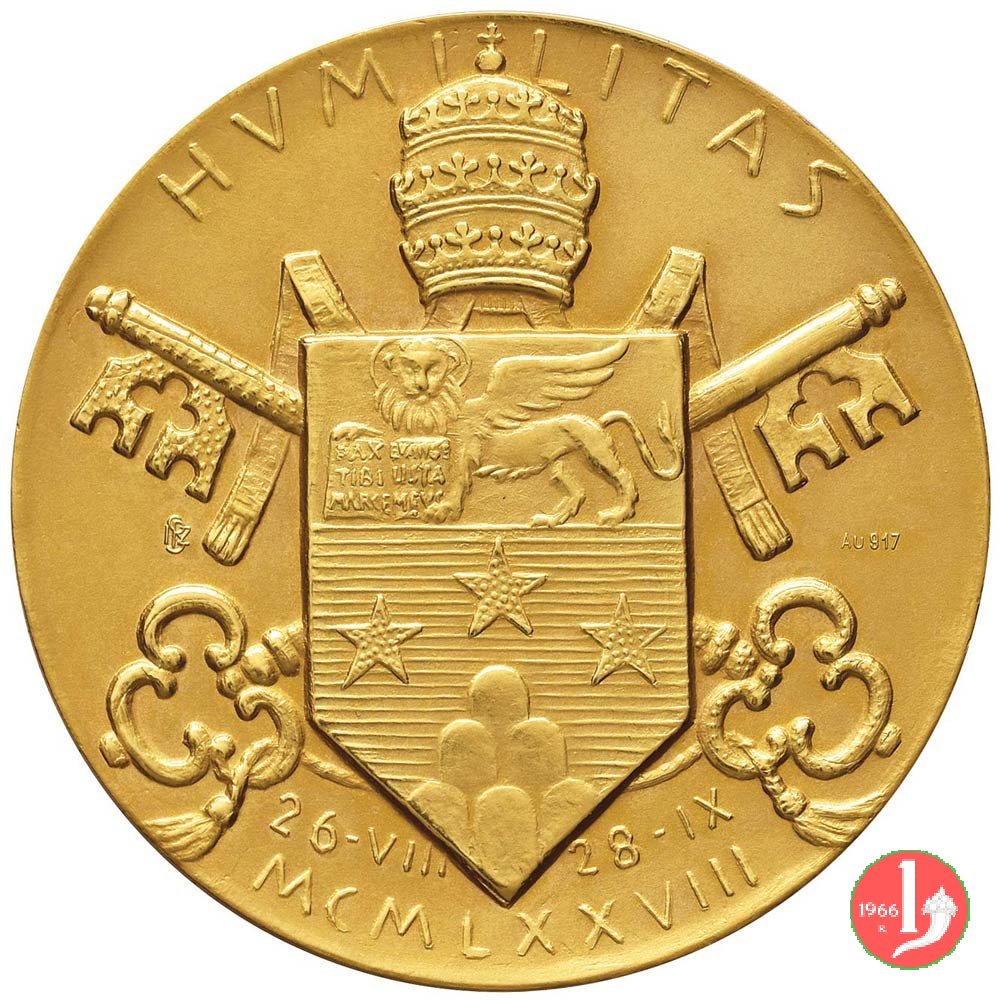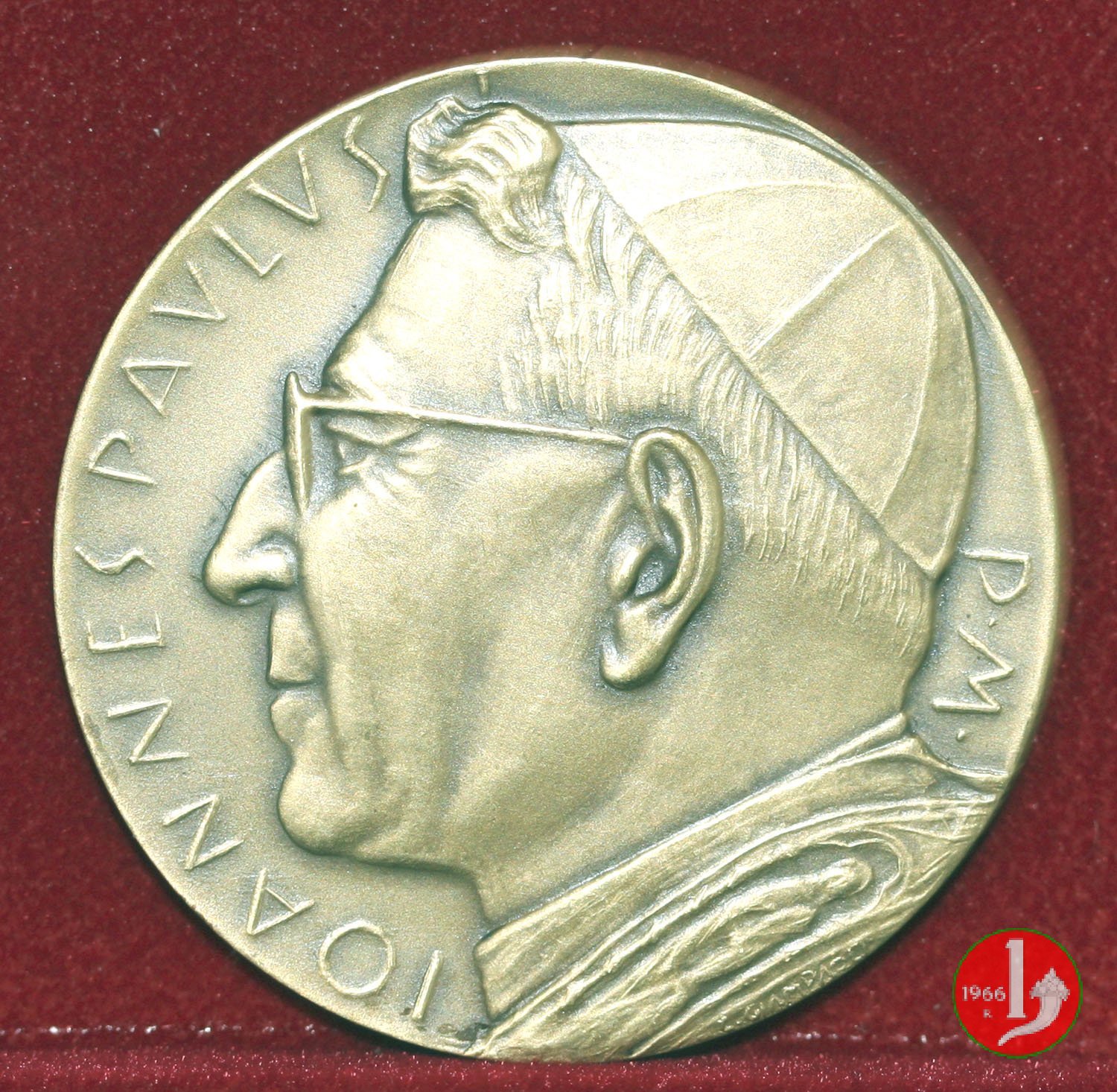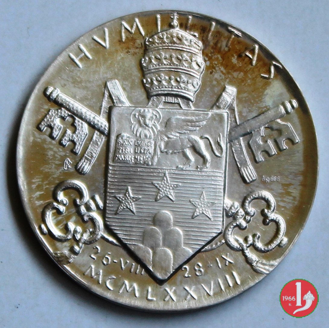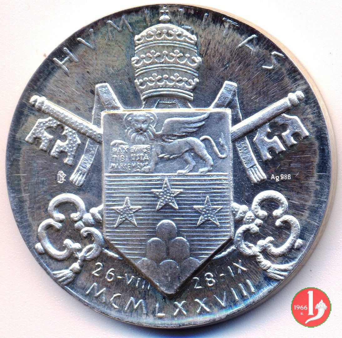 Medaglia ufficiale coniata, emessa nel 1978 con fondo satinato, per ricordare il breve pontificato di Giovanni Paolo I.