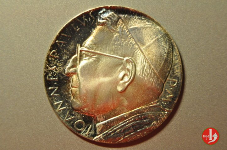 | Medaglia ufficiale coniata, emessa nel 1978 con fondo satinato, per ricordare il breve pontificato di Giovanni Paolo I. | |||||||