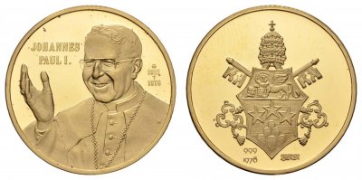 | Medaglia coniata, emessa nell'ottobre 1978 dallo StabilimentoJmm Munz Institut Monaco di Baviera in Germani con fondo specchio, a ricordo del Pontificato di Giovanni Paolo I. | ||||||