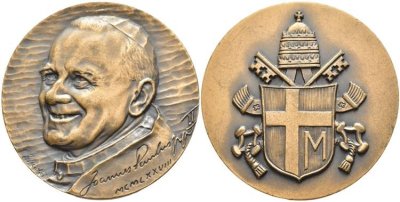 | Medaglia coniata, realizzata nel 1979, per omaggio al Papa dalla rivista La Numismatica, nel decennale della fondazione. | |||||||||||||