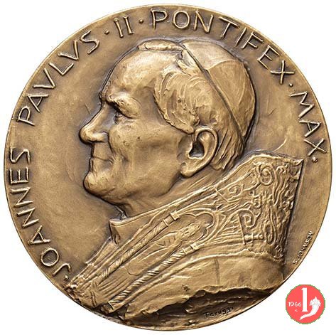 | Medaglia coniata, emessa il 05-06-1988 con fondo opaco dallo Stabilimento Stefano Johnson di Milano, per ricordare la visita Pastorale a Castel San Giovanni (PC). | ||||||