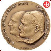 | Medaglia privata coniata, realizzata il 03-06-1988 dallo Stabilimento Stefano Johnson di Milano, per ricodare la visita alla Diocesi di Modena - Nonantola. | |||||