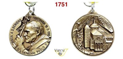 Medaglia coniata, emessa il 19-03-1990, per ricordare la Visita Pastorale a San Benigno Canavese (TO) e la Celebrazione della S. Messa all'Abbazia di Fruttuaria. | ||||