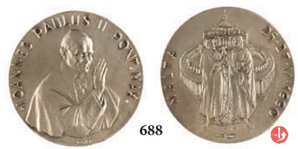 Medaglia coniata, emessa il 25-05-1990, dallo Stabilimento Stefano Johnson di Milano, per ricordare il Viaggio Apostolico a Malta.