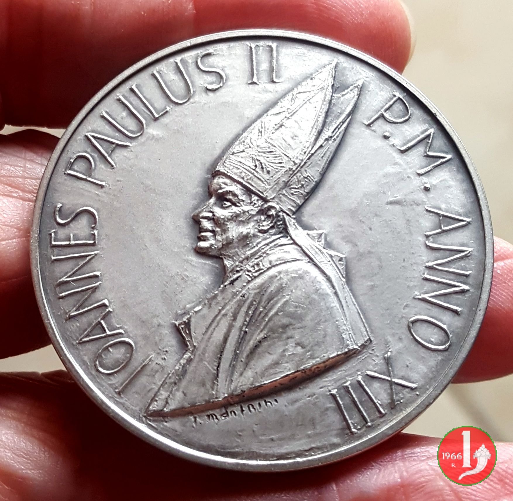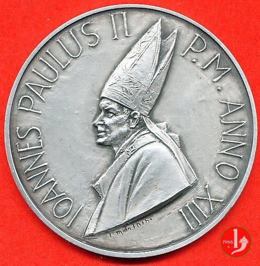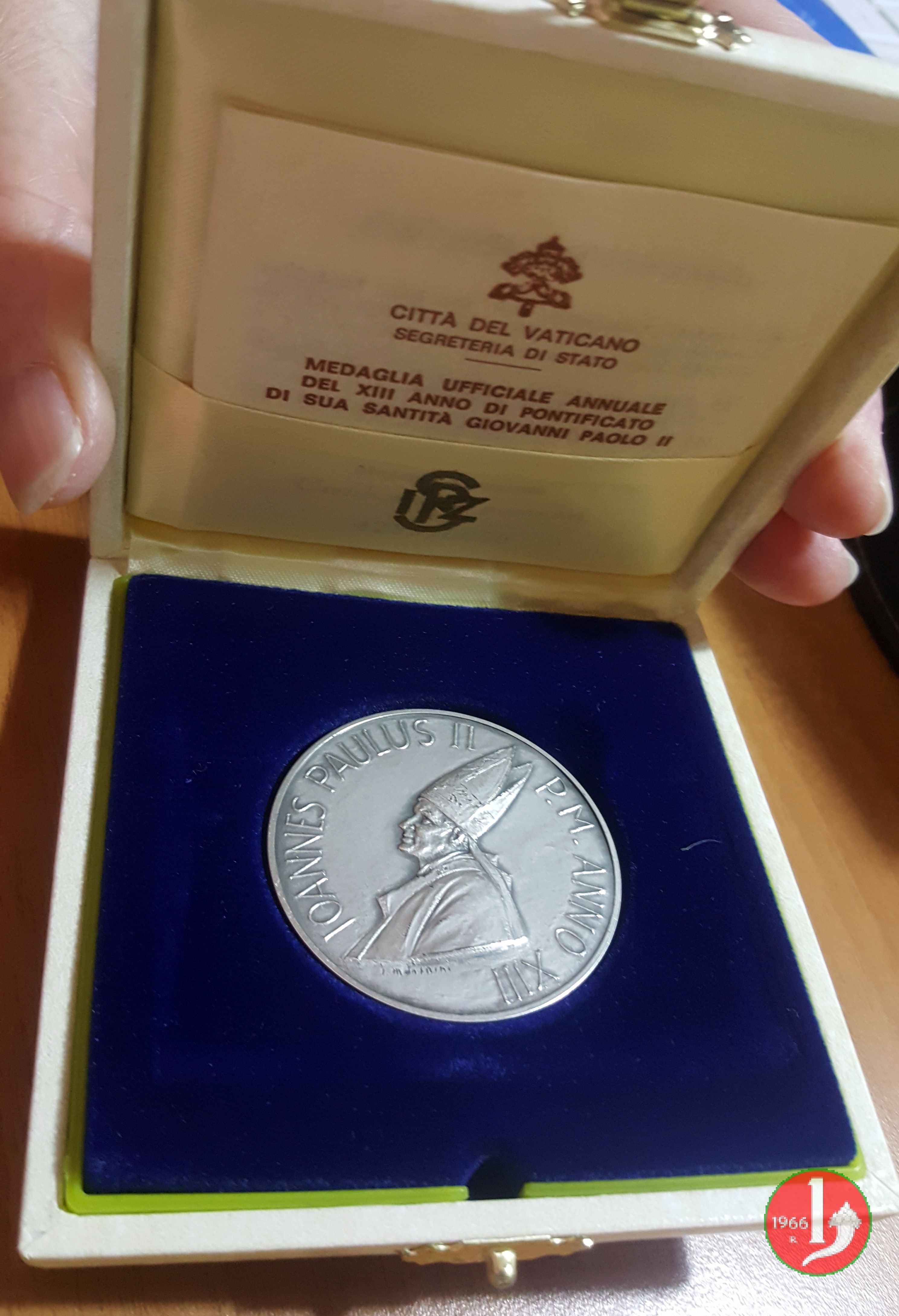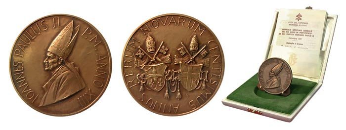 | Medaglia annuale coniata, emessa il 29-06-1991, dall'Istituto Poligrafico e Zecca dello Stato di Roma, per celebrare il 100° Anniversario dell'Enciclica Rerum Novarum. | |||||||