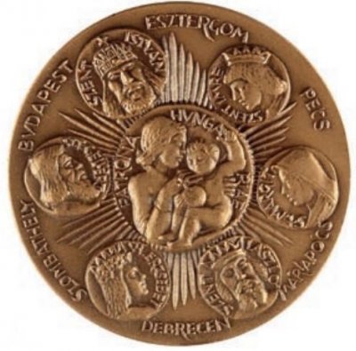 Medaglia coniata, emessa il 16-08-1991 con fondo opaco per ricordare la Viaggio Apostolico in Ungheria. | |||||||