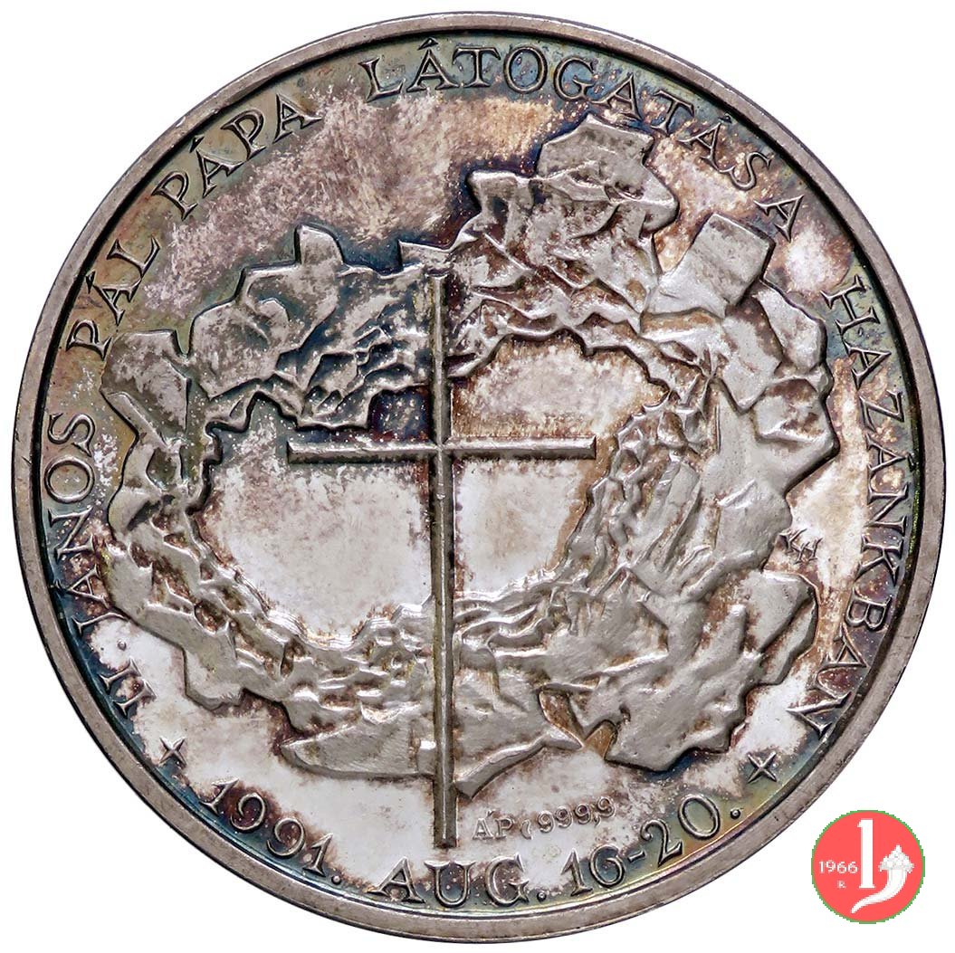 | Medaglia coniata, emessa il 16-08-1991, con fondo opaco, per ricordare la visita Apostolica in Ungheria. | ||||||