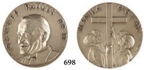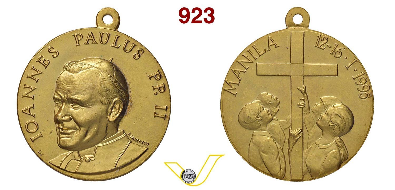 Medaglia coniata, emessa il 12-01-1995 con fondo opaco dallo Stabilimento Stefano Johnson di Milano per la Segreteria di Stato, per ricordare il viaggio Apostolico nelle Filippine a Manila.
