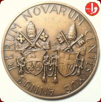 | Medaglia coniata, emessa il 29-04-1997 per ricordare il Congresso Internazionale sulla Rerum Novarum a Roma, promosso da Acton Institute e dall'Ateneo Pontificio Regina Apostolorum. Per il dritto è stato riutilizzato il conio del verso appartenente alla Medaglia annuale anno XIII del Pontificato di Giovanni Paolo II. | |||||