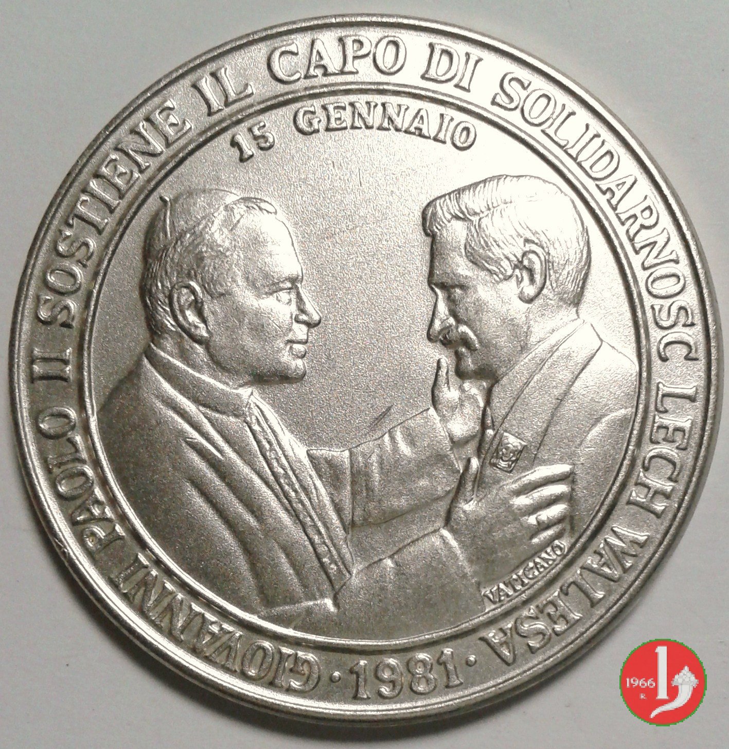 Medaglia privata coniata, realizzata postuma, per ricordare l'incontro con Lech Walesa del 15-01-1981.