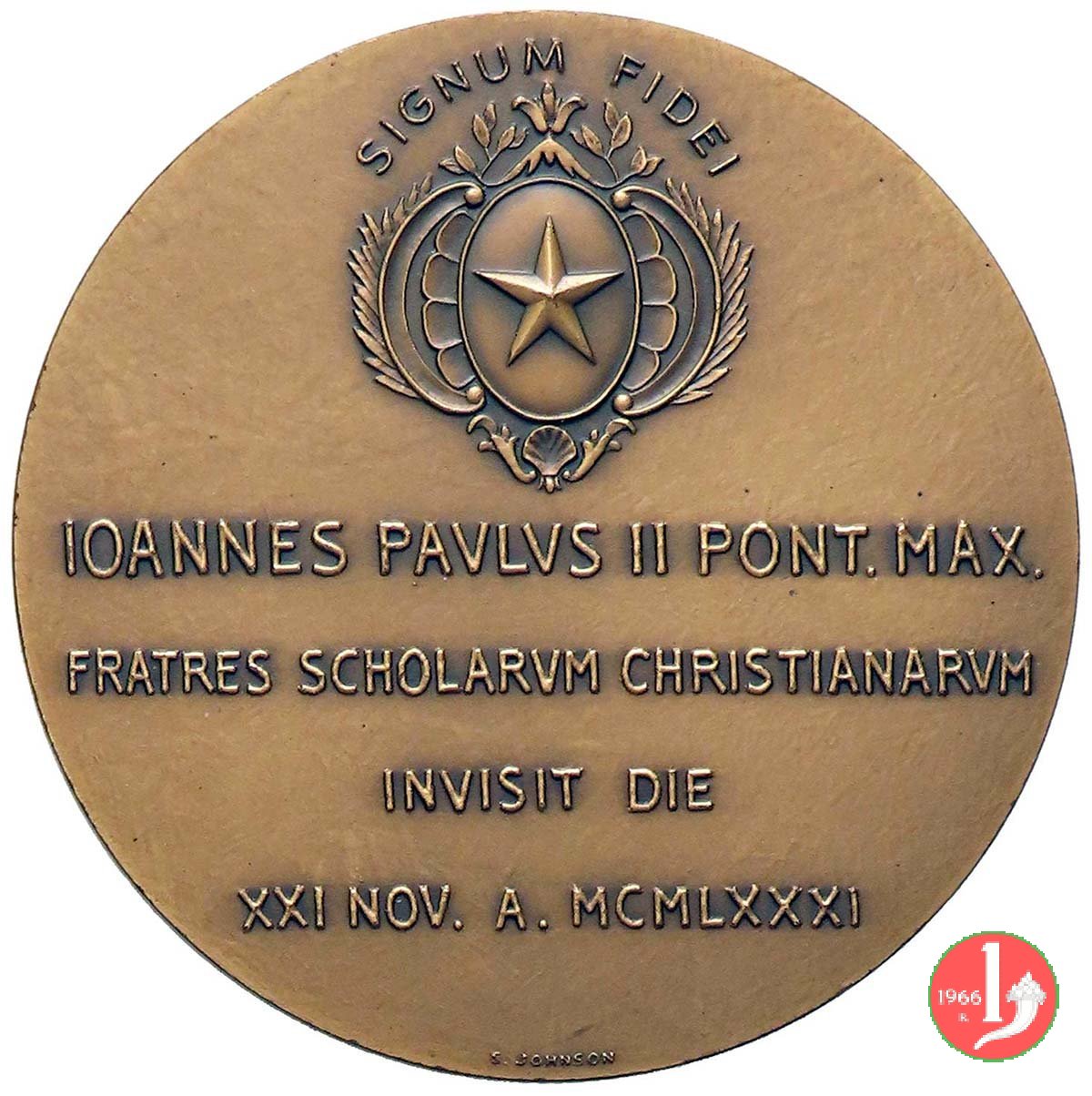 Medaglia coniata, emessa il 21-11-1981 a ricordo della Visita di Giovanni Paolo II alla Casa Generalizia dei Fratelli delle Scuole Cristiane - Istituto La Salle di Roma.
