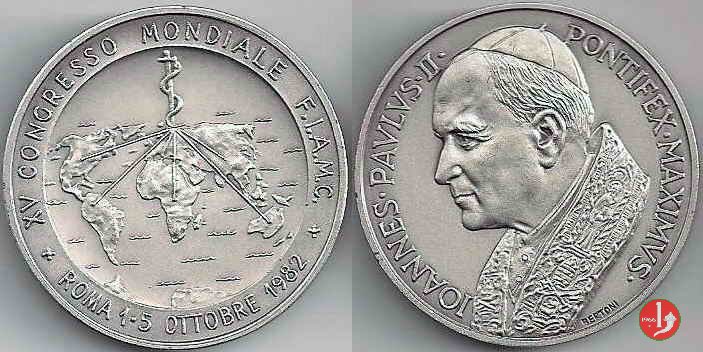 | Medaglia coniata, emessa il 01-10-1982, con fondo opaco dallo Stabilimento Bertoni di Milano su incarico della Segreteria di Stato, per ricordare il 15° Congresso Mondiale FIAMC Federazione Mondiale Associazioni Mediche Cattoliche a Roma. | |||||