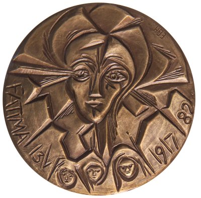 Medaglia annuale coniata, emessa il 29-06-1983, dall'Istituto Poligrafico e Zecca dello Stato di Roma, a ricordo del sessantacinquesimo Anniversario della prima apparizione della Madonna a Fatima. | ||||||||