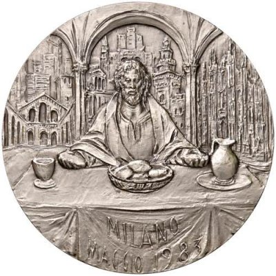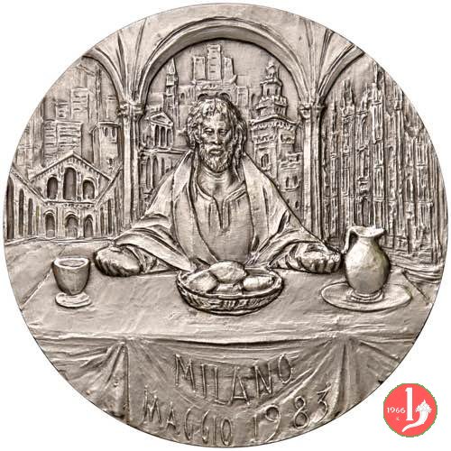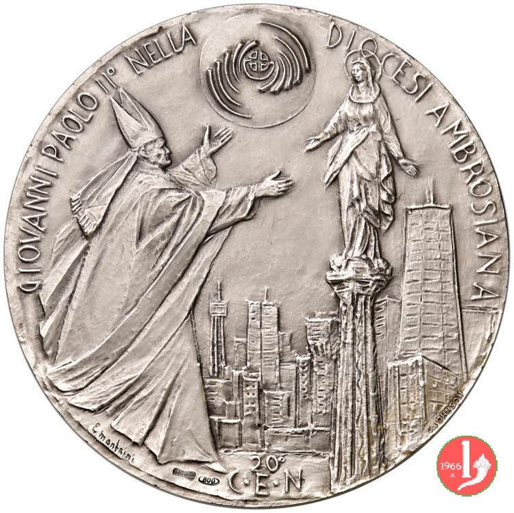 | Medaglia coniata, emessa il 20-05-1983, con fondo opaco, dallo Stabilimento Stefano Johnson di Milano, per ricordare la visita del Papa a Milano in occasione del 20° Congresso Eucaristico Nazionale. | |||||||