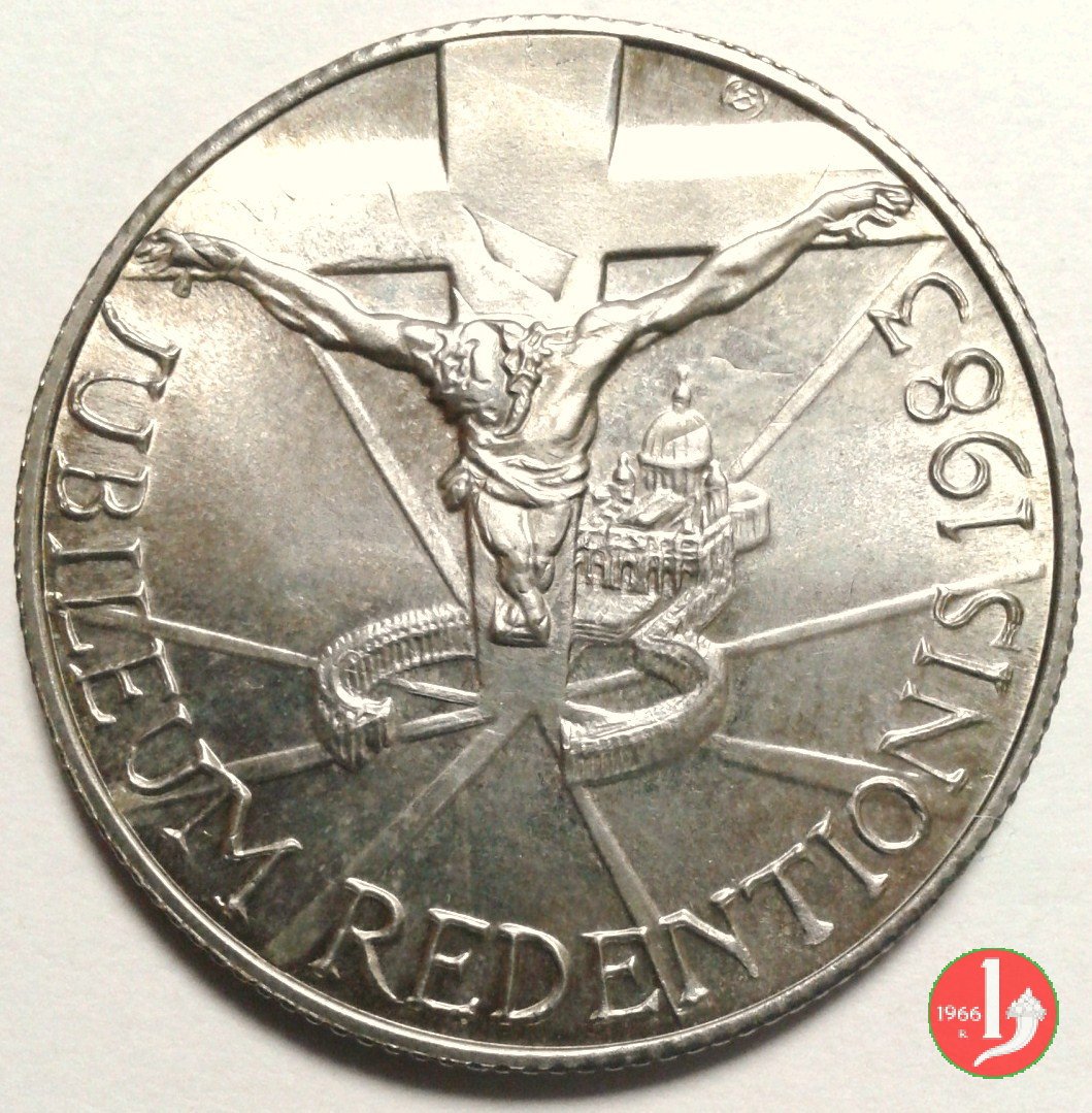 | Medaglia privata coniata, realizzata nel 1983 con fondo specchio oppure satinato, per ricordare il Giubileo Straordinario della Redenzione. | ||||||