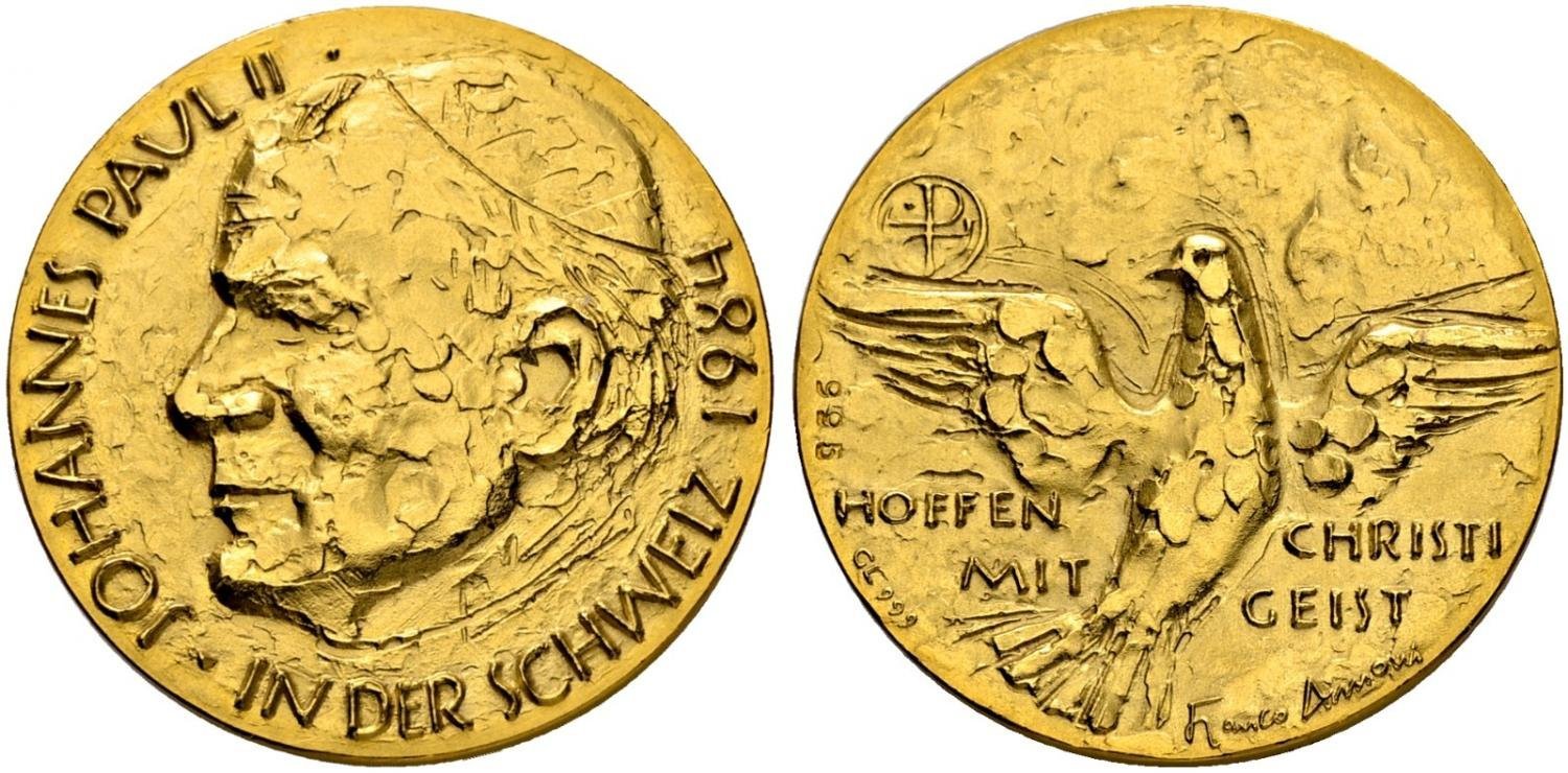| Medaglia coniata, emessa il 11-06-1984, per ricordare la Visita Apostolica in Svizzera. | |||||