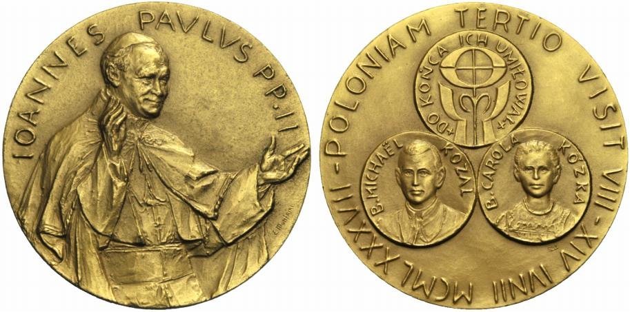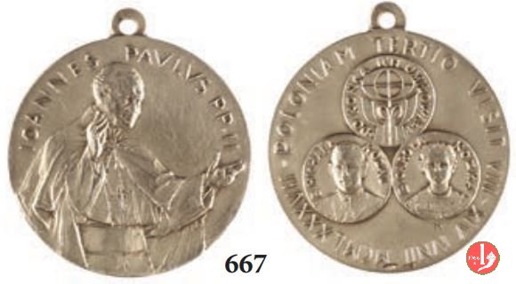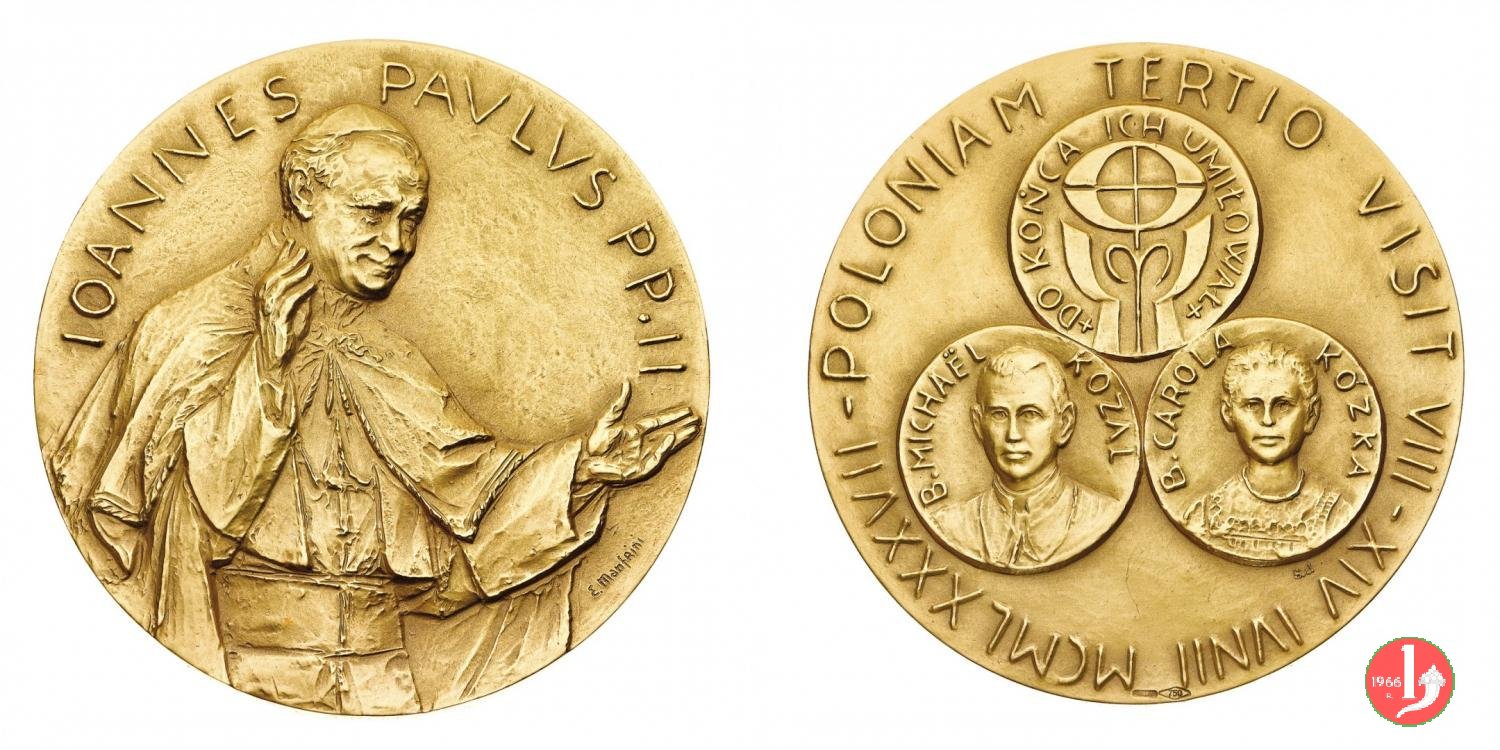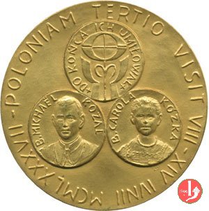 | Medaglia coniata, emessa il 08-06-1987, con fondo opaco, per ricordare il viaggio Apostolico in Polonia. | |||||||