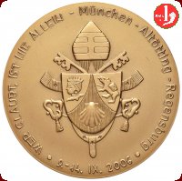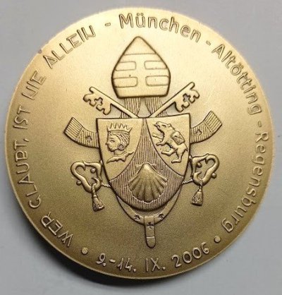 | Medaglia straordinaria coniata, emessa il 09-09-2006 dalla Santa Sede, per ricordare la vista del Papa in Germania. | |||||