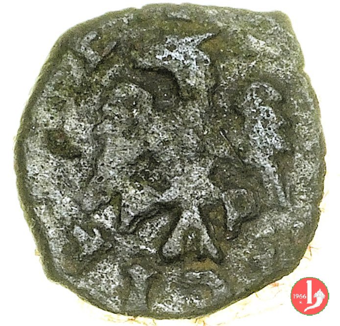 Aquila coronata ad ali aperte volta a sinistra, sotto le ali PP