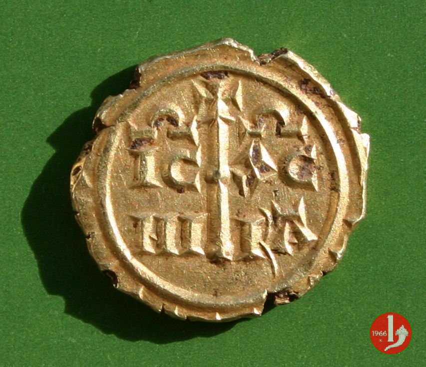 Aquila stilizzata volta a sinistra con diadema di tre globetti sulla testa, davanti al becco un globetto; entro cerchio lineare. Intorno legenda cuficorme. Croce teutonica accantonata dalle lettere IC XC con sopra omega/ NI KA, entro cerchio lineare. Intorno segni decorativi.