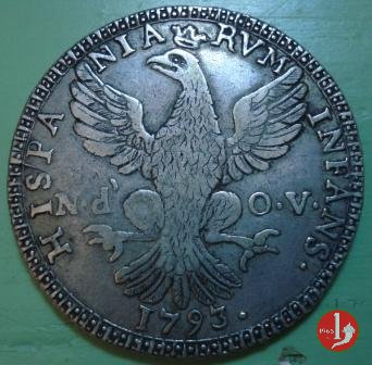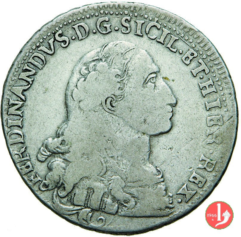FERDINANDUS D(ei) G(ratia) SICIL(iae) ET HIER(usalem) REX HISPANIARUM INFANS FERDINANDO (III), PER GRAZIA DI DIO, RE DI SICILIA E GERUSALEMME, INFANTE DI SPAGNA Nell'anno 1793 le monete erano coniate con la sigla N.d' O.V negli anni successivi la d cambia con un 6 speculare. | |||||||||||||||||||||||||||||||
